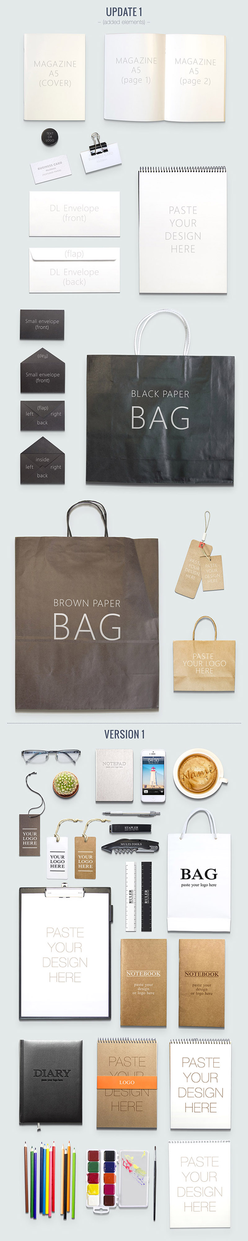 - 20 different items with hundreds of photoshop mockup templates & objects