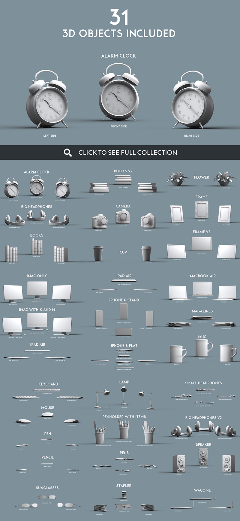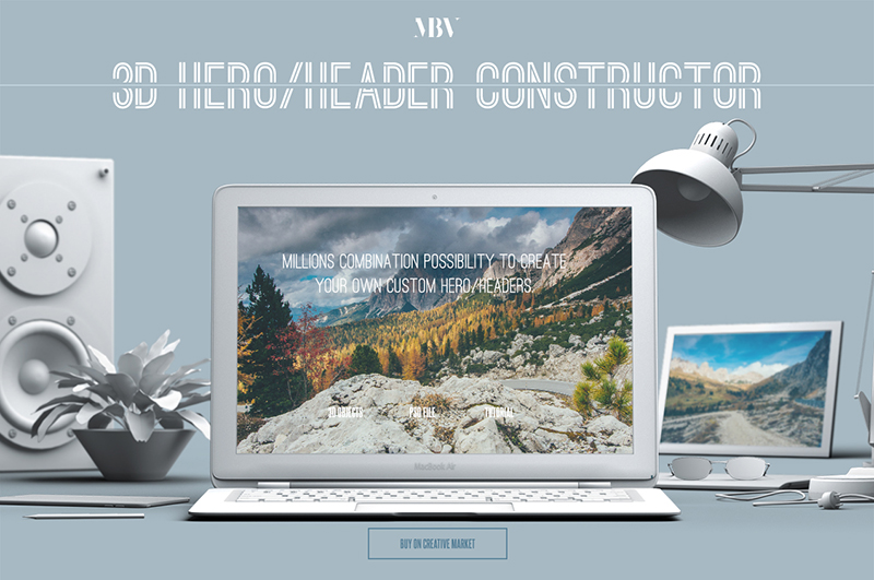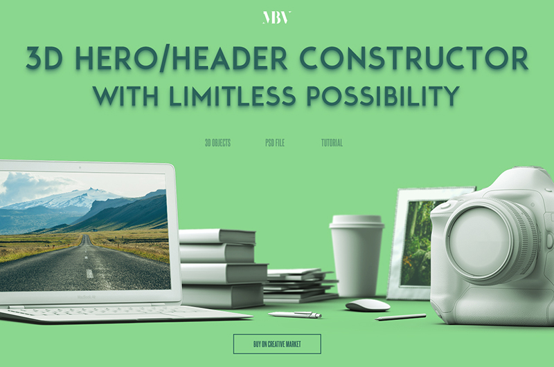 A new step in creating cool Hero/Header images. First time on Creative Market. Enough with “from-top” hero/header images everybody using, try this new approach and stand out from the rest of the crowd 🙂 Construct your own amazing custom hero/header images using new trendy, occlusion-style 3D objects Constructor. All objects rendered with alpha channel for easy moving around the canvas. Create with ease a super cool landing pages in minutes!! Be creative, be different!