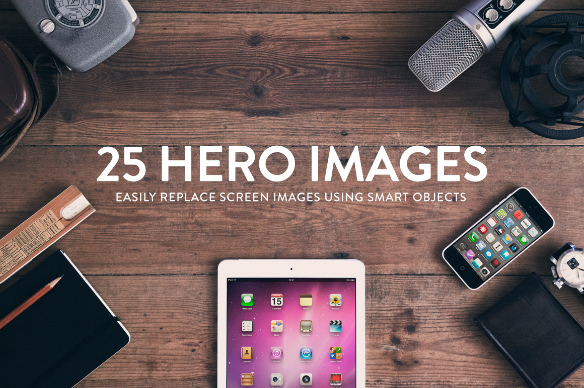 Grab 25 awesome “hero” photographs for you next project. All the digital devices used in the photos (iPhone, iPad, MacBook Pro and Kindle) have replaceable Smart Object ‘screens’ making it easy for you to drop in your own designs or images. All arrangements come with a laptop open and closed version. Image sizes: 5561x3718px allowing you to use them as large full width images on your website, create landing/coming soon pages or even use them for print/magazine design work.