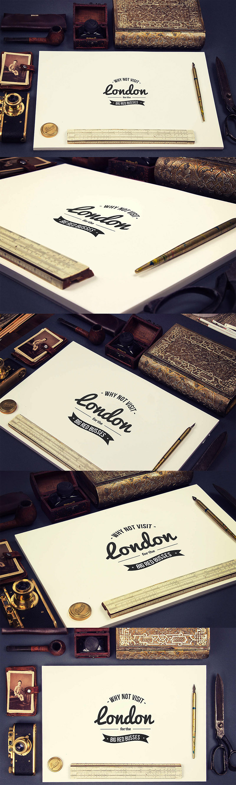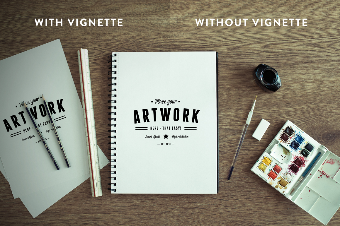The latest in our header/hero image series – inspired by all the amazing hand lettering seen on Instagram – we decided to make a series of header style images to allow you to easily mockup your latest artwork and share it on social media platforms or on your website/portfolio. The sketchpads use replaceable Smart Object ‘layers’ to make it easy for you to drop in your own designs or images. The pencils and rulers overlayed on the torn off sheets are separated into another layer – allowing you to really create an authentic looking mockup and saving you time. The vignette is applied in a separate layer above the background and can be turned off if you do not want the effect or reduced/enhanced to achieve your desired result.
