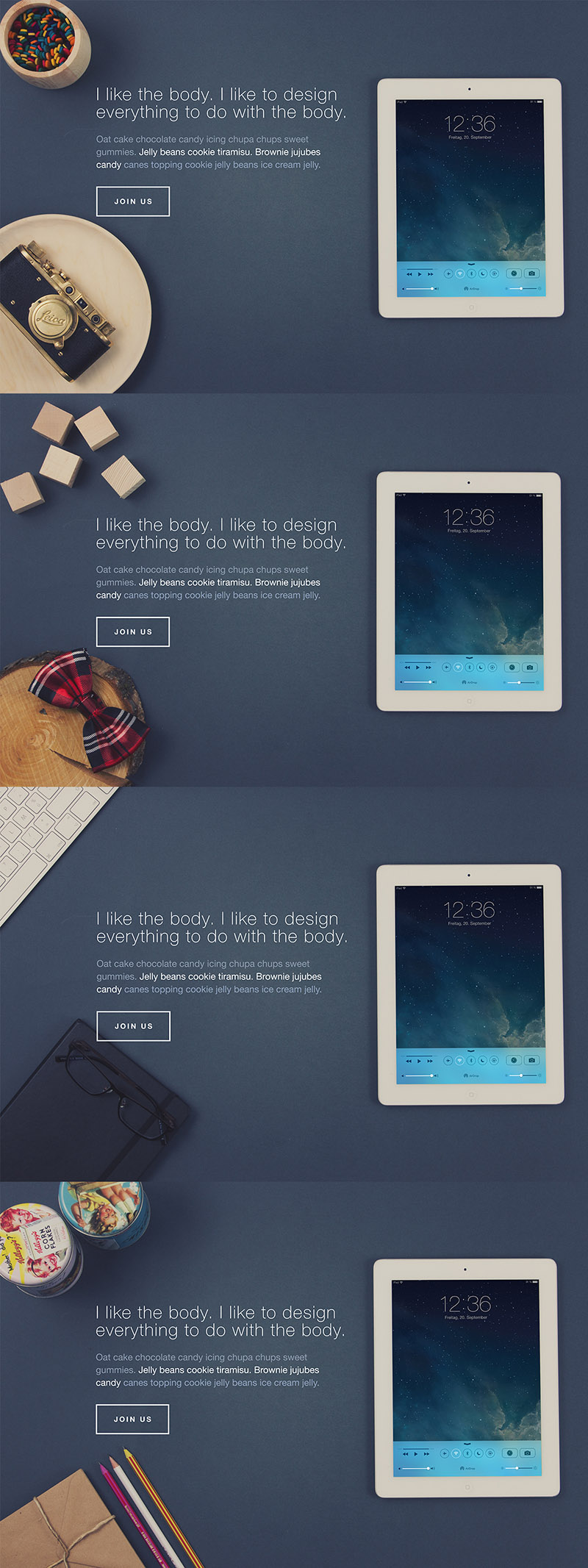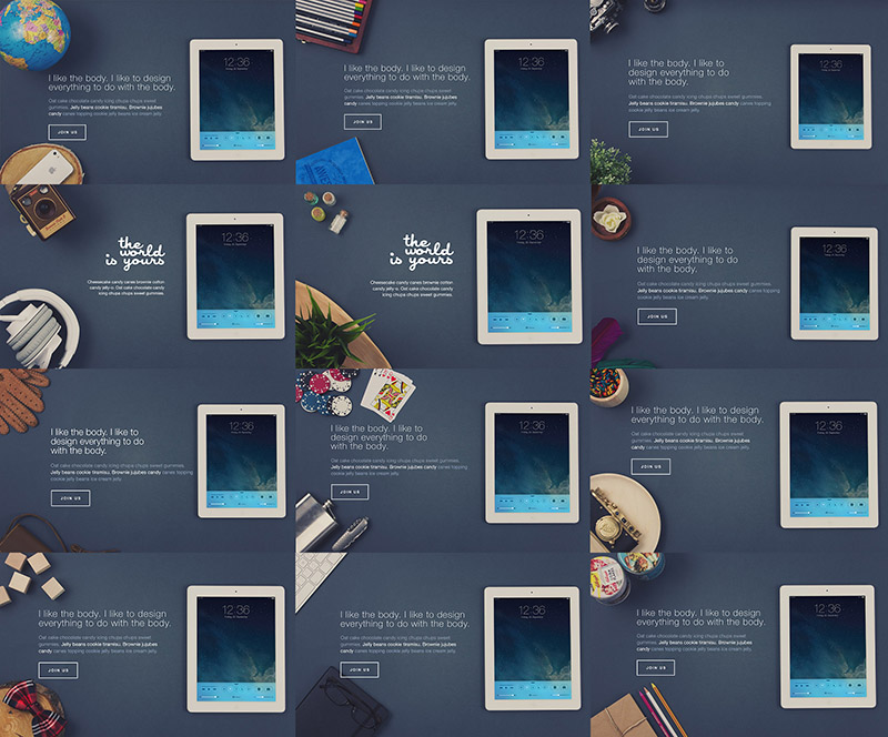 Use these hero/header presentation ipad mock-ups from from mockupskingdom for your landing page, website header, presentation and more. Just add tagline and you are set! You can edit the iPad with just few clicks. Have fun and be creative. Very easy to use. All scenes are 300DPI ready for print or you can downsize them for web. All Scenes are powered by Smart Object. All you have to do is to double click the layer “edit me”, place your design and save the smart object and your design renders in the scene. No Photoshop skills required.