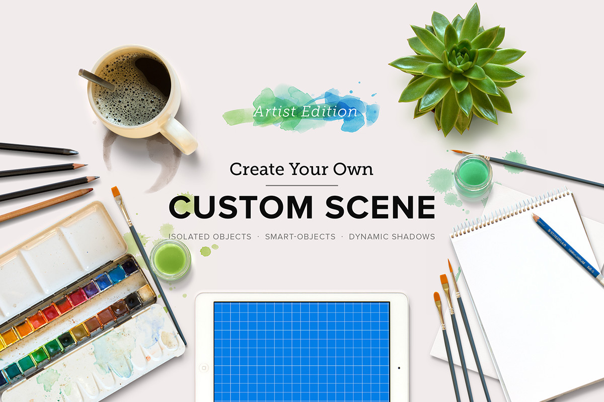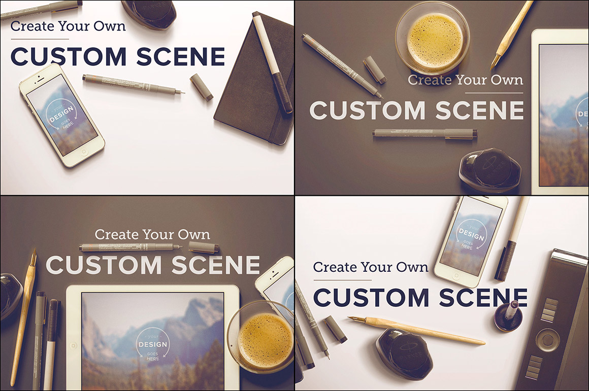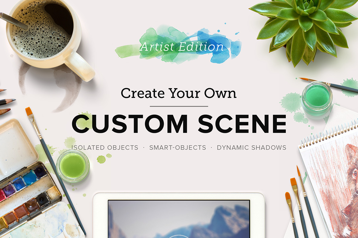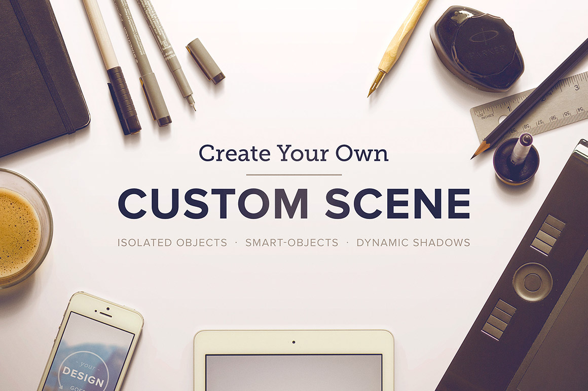 Custom Scene allows you to create your own scene quickly and easily. Isolated Objects: Each object in this scene is split into separated layers. That will give you the freedom to change the size, position, rotation or even hide the object from the scene.Smart-Objects: Using Photoshop’s technology, each object is a smart-object, allowing you to transform each object non-destructively. Dynamic Shadows: Would it make sense if the shadow remained the same while moving and rotating an object? Of course not! Dynamic shadows will do the job! Using Photoshop’s Global Light, each object has it’s individual shadow that will change direction depending on it’s own rotation. Also because this composition is using Global Lighting, it’s easy to change the direction of the light of the whole composition! All Custom Scenes include 10 filter effects to create unique composition and a lighting correction layer to improve your lighting scene. It also includes a background layer to easily change your backgrounds.