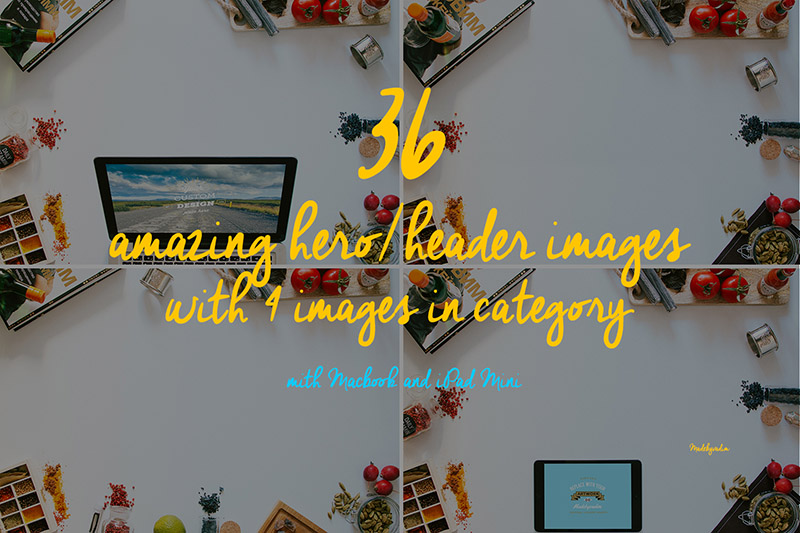 36 Amazing “Header/hero” images and mockups for you next BIG project with replaceable Smart Object screen for iPad and Macbook Pro centrepiece. Best for landing page, website header, blogs, presentation or projects! Just add tagline and you are set!