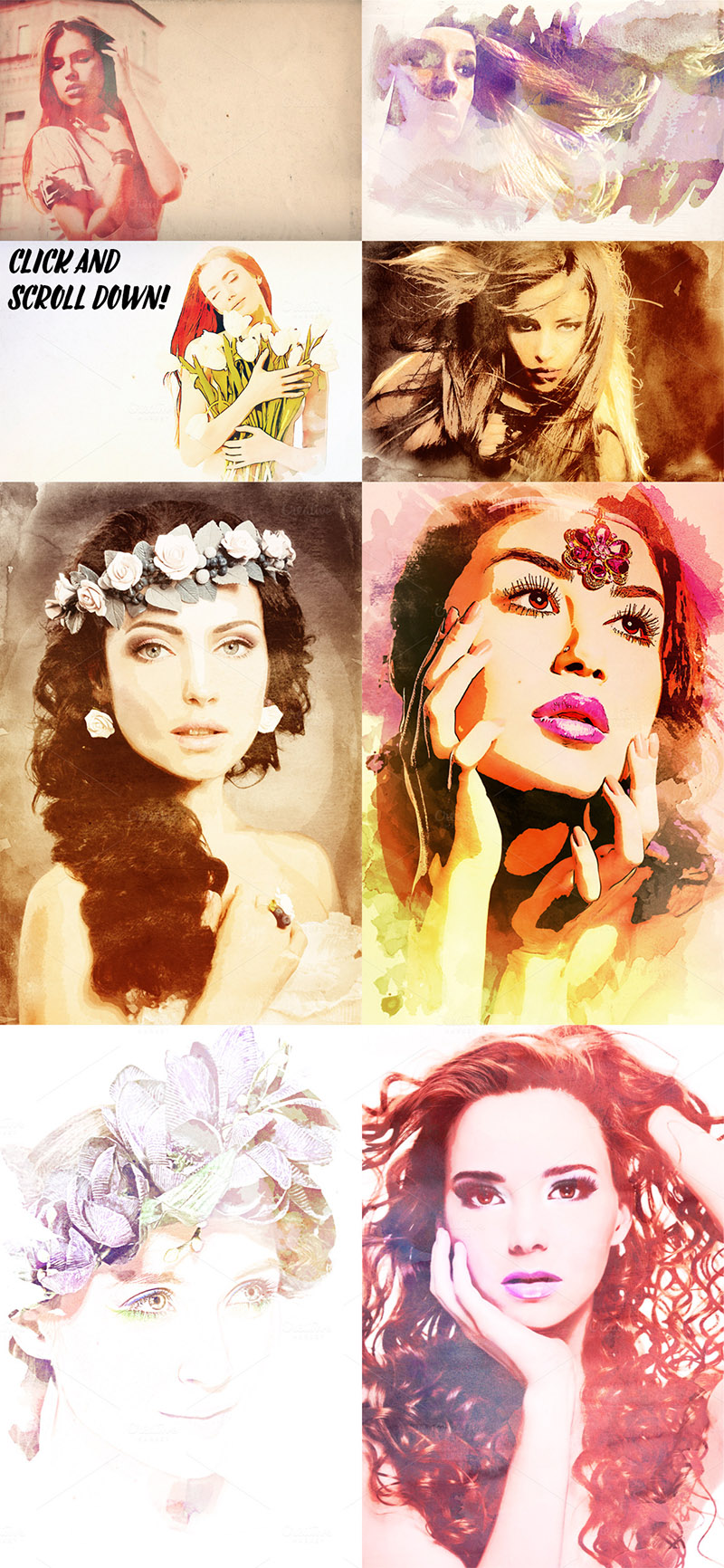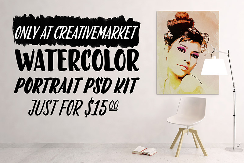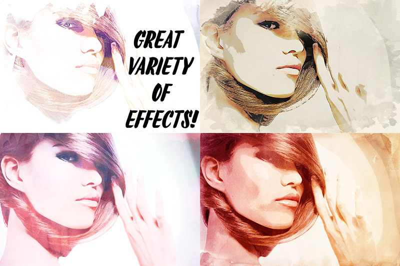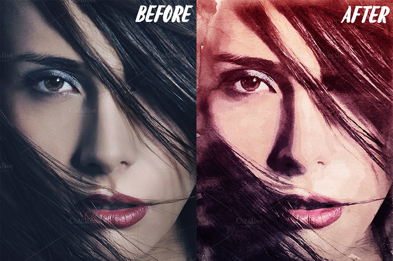 Watercolor portrait PSD kit is an awesome collection of effects which can help you to convert your photos into watercolor painting imitation.