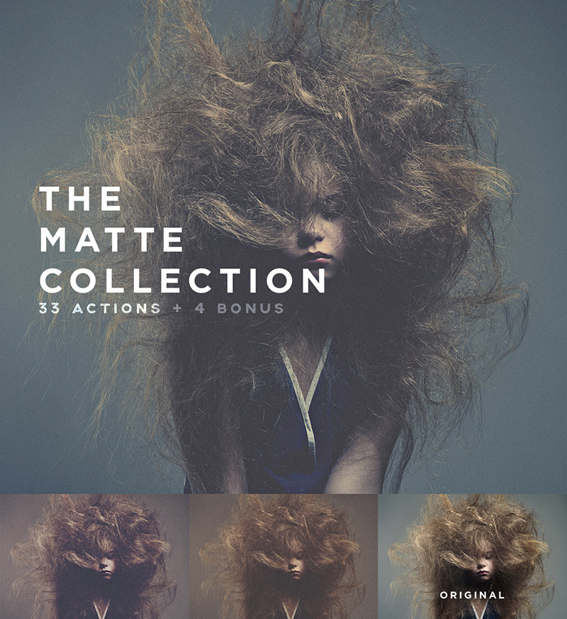 The Matte Collection is a special Photoshop action set that includes not 1! not 2! not 8!! — but 33 actions! PLUS 4 extra bonus actions. This collection is a remix of all my actions with a faded look. The best top quality actions in Creative Market! The actions I build are optimized for Photoshop in any language, to have the fewest steps possible and never break with the typical “Layer 1 not found” errors. You are getting top quality action builds with original effects which are easy customizable. The actions are build so neatly that you can combine them with any other of my actions and they won’t break. And YES, this works in Photoshop Elements!