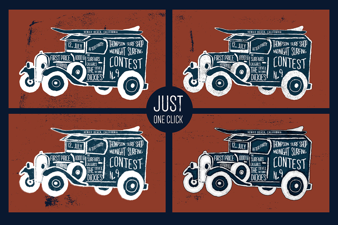 5in1 Mega Bundle v.3: Add-Ons (Effects & Actions) contains 80+ vintage text effects, 215+ photography actions, 380+ brushes & lot of styles, patterns and mockup templates from 5 talented designers.