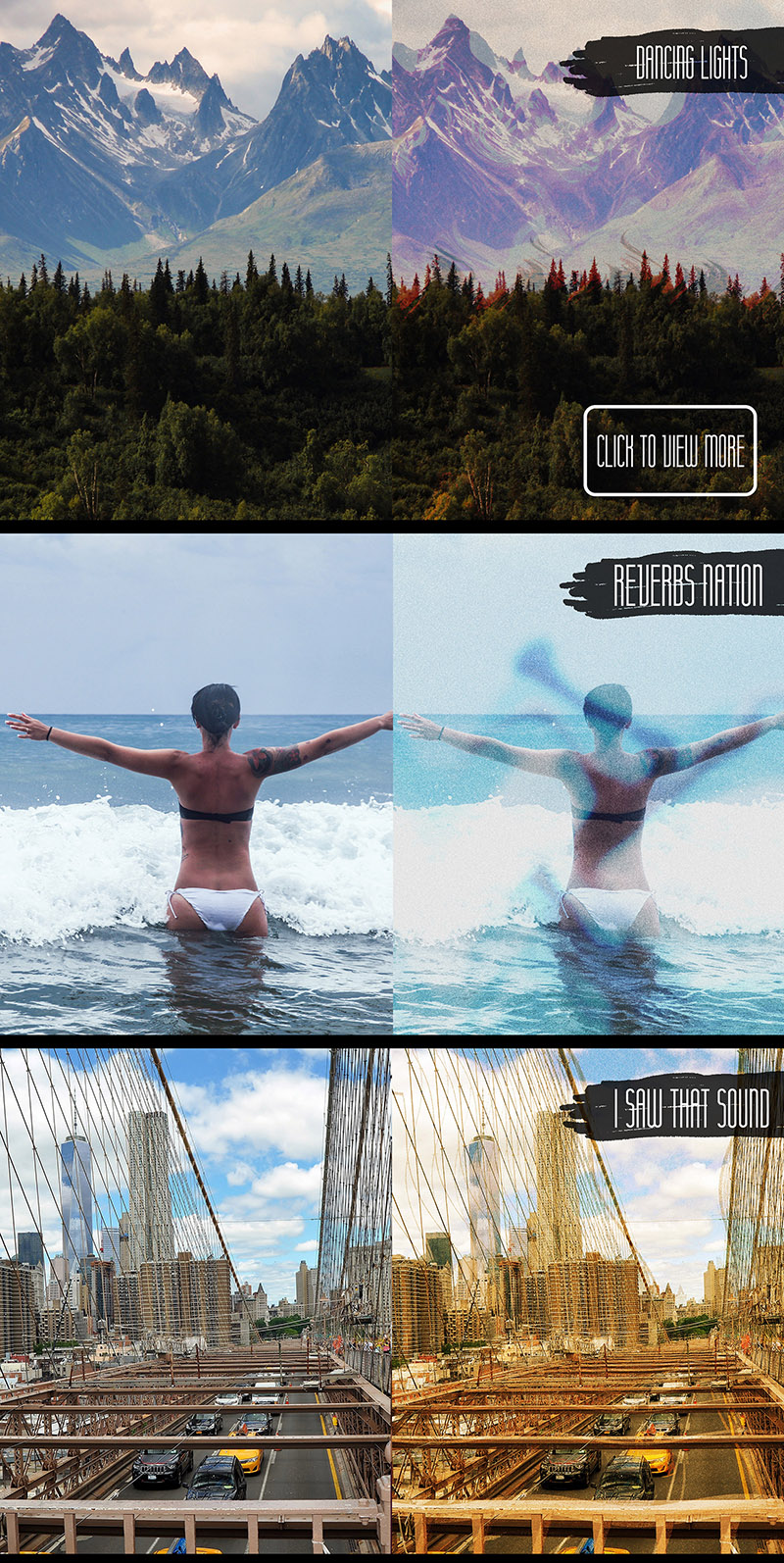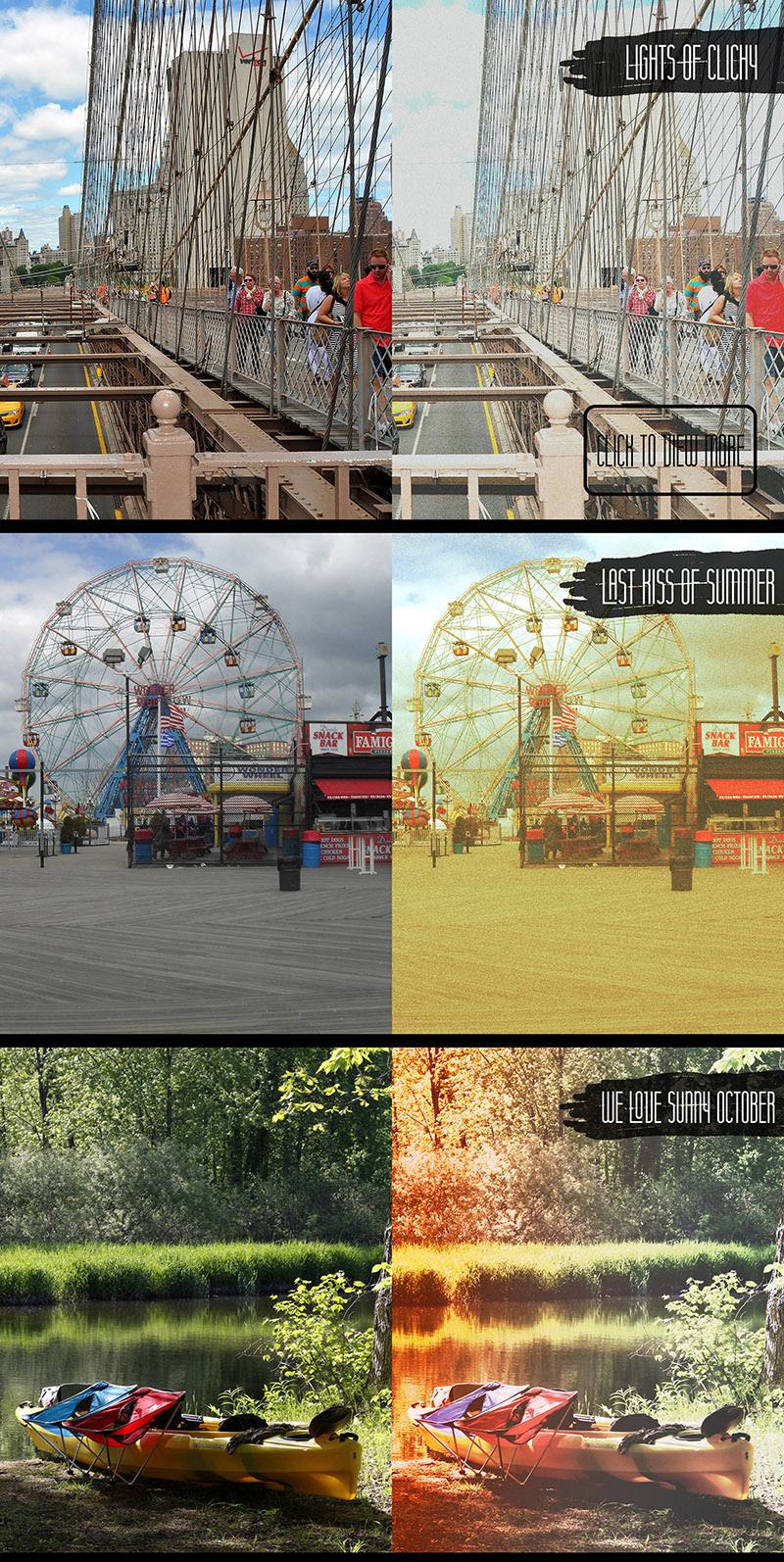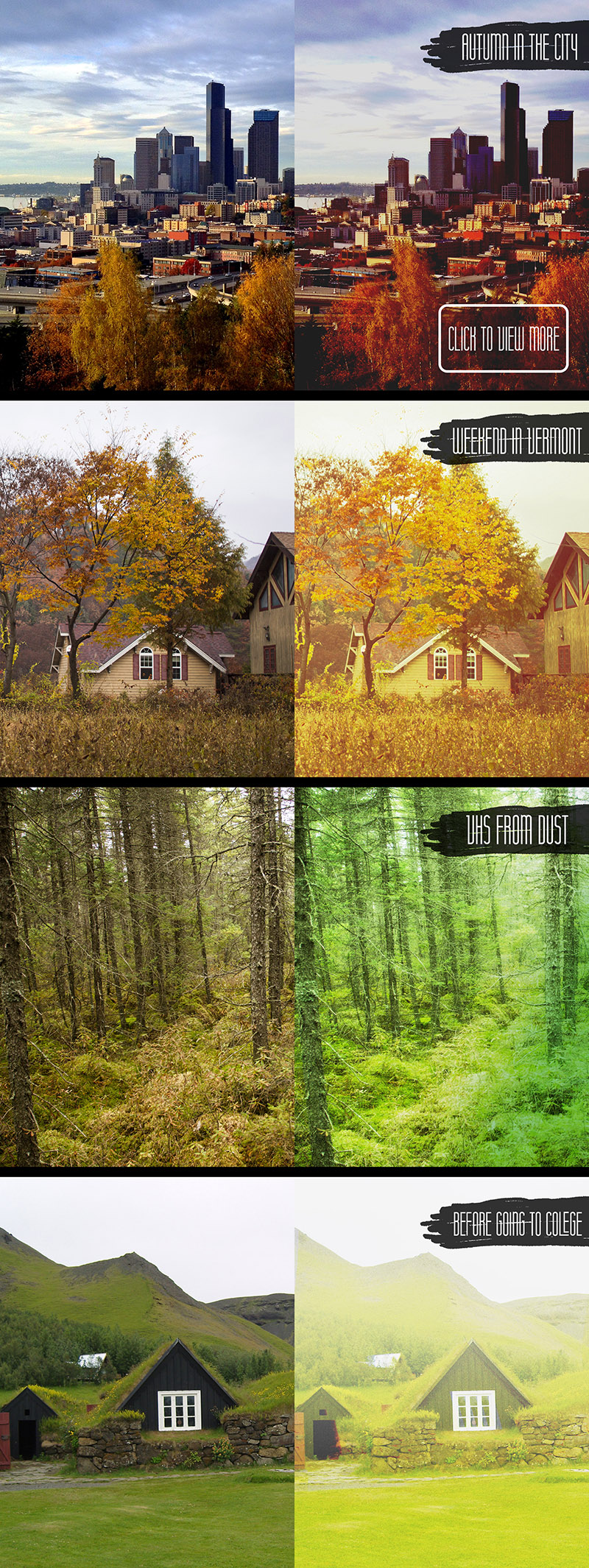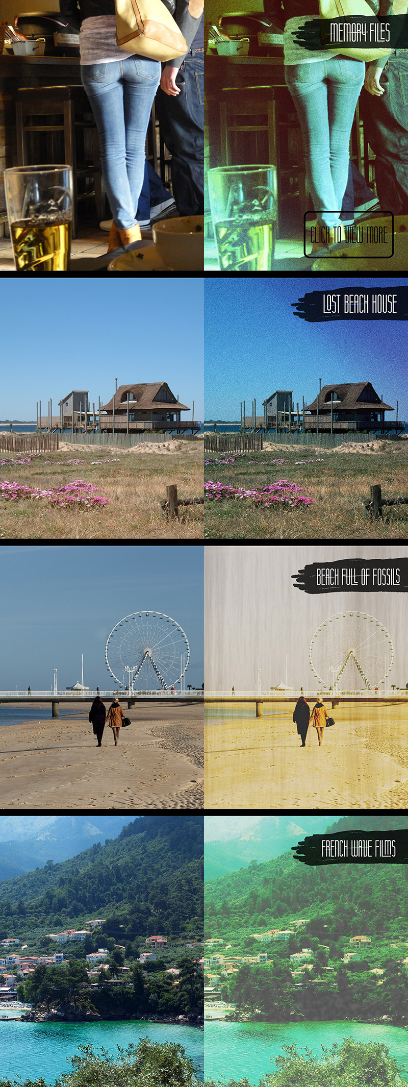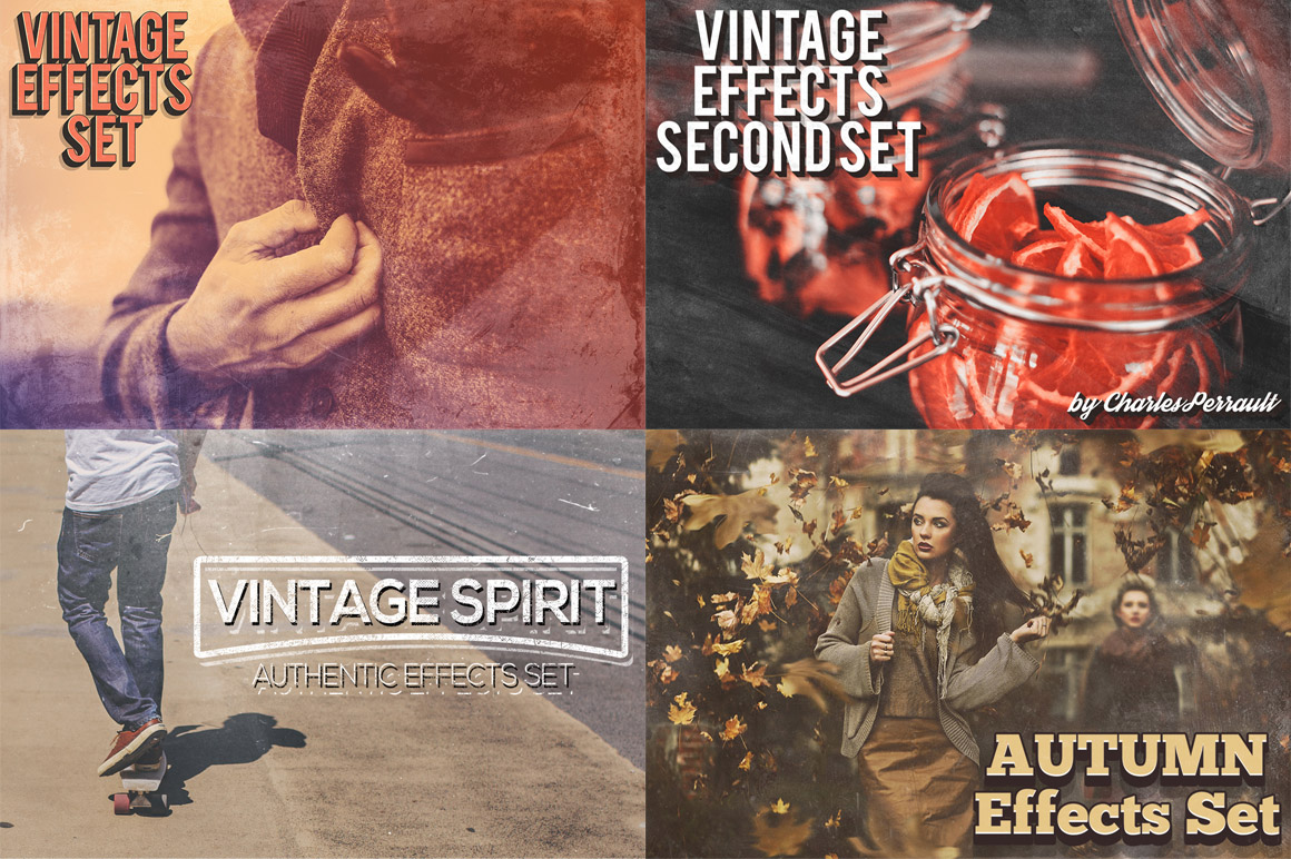 “Authentic Effects Bundle” is a collection of vintage atmospheric effects useful for any photo. Add vintage and atmospheric look to your photos in few clicks!