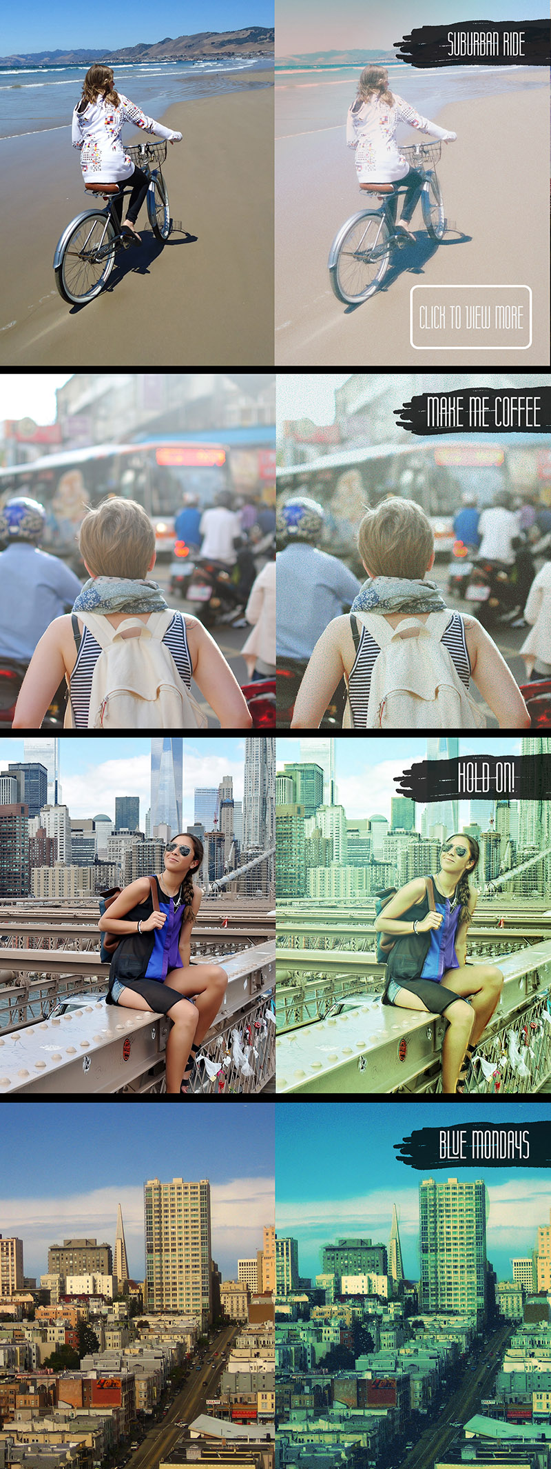These effects will help you to give your images nice vintage/fashion look in few simple clicks. Great for studio shoots.