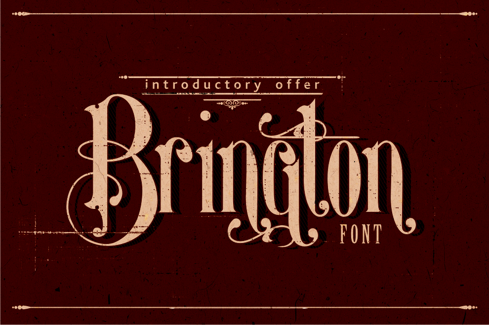 Brington custom font was made with a mixture of ornament adds in classic and vintage style. Can be used for book titles, bands, movies, advertising etc.