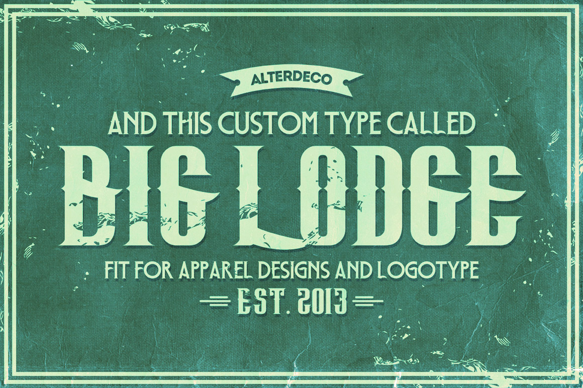 Big Lodge Custom Type, is a vintage and retro style font, fit for a logotype, band logo, or apparel design.