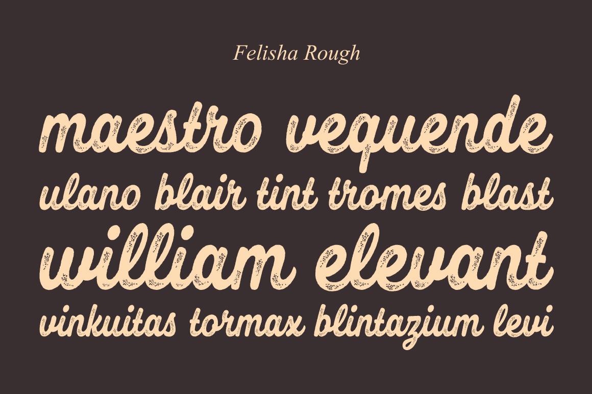 Felisha is a multipurpose bold typeface which can be used in both modern or vintage design style. Felisha comes with 2 different styles: Regular and Rough. They are suitable for retro sign, vintage-style, badge, branding, poster, etc.