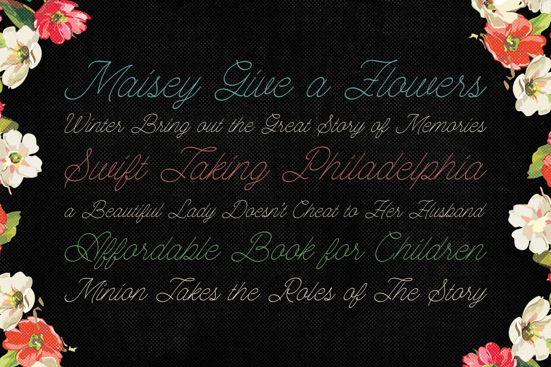 Advena is an elegance monoline script with the purpose of finding a balance between calligraphy and natural hand writing. Advena contains total 325 glyphs and more than 150 alternate characters to improve your design. It is suitable for wedding invitation, any greeting cards, retro / vintage design style, etc. Mix and match the alternate characters to add an attractive message to your design. The alternative characters in Advena font were divided into several OpenType features such as Contextual Alternates, Stylistic Alternates, Stylistic Sets, Swash and Ligature. The OpenType features can be accessed by using OpenType savvy program such as Adobe Illustrator and Adobe InDesign.