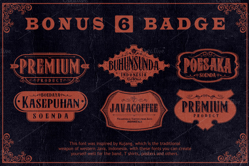 This font was inspired by “Kujang” which is the traditional weapon of West Java, Indonesia. With these 3 fonts you can create amazing T Shirt arts, Posters, Headers…