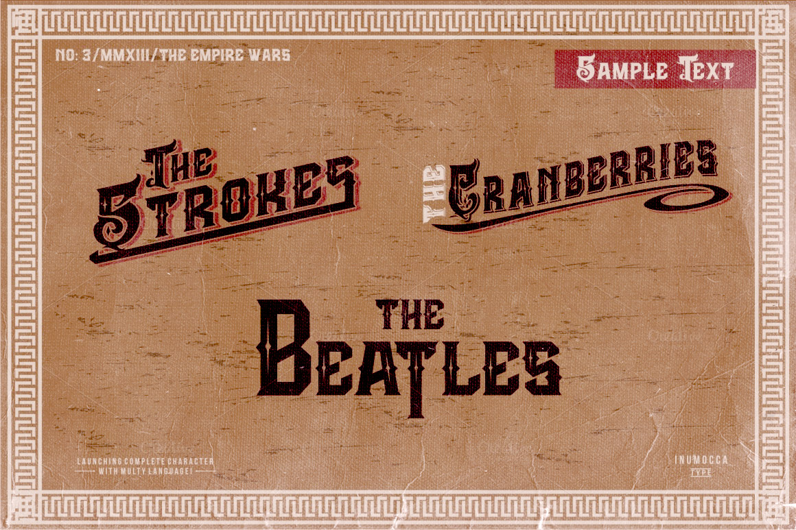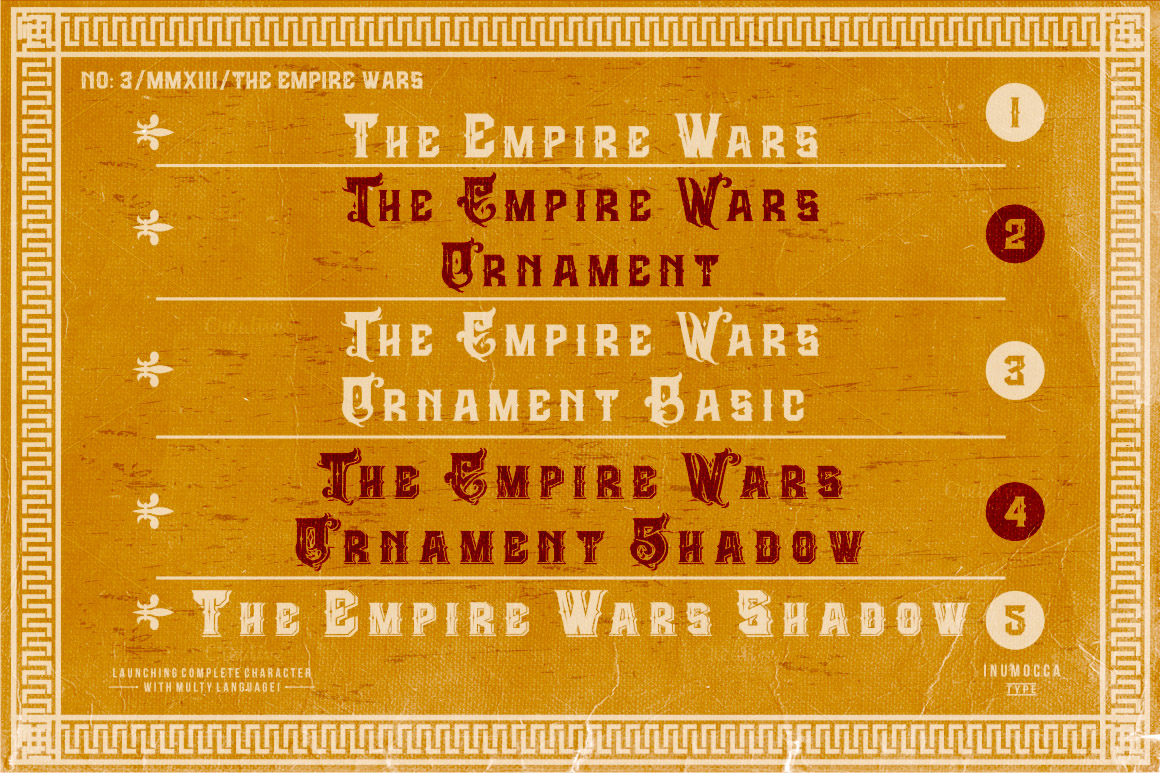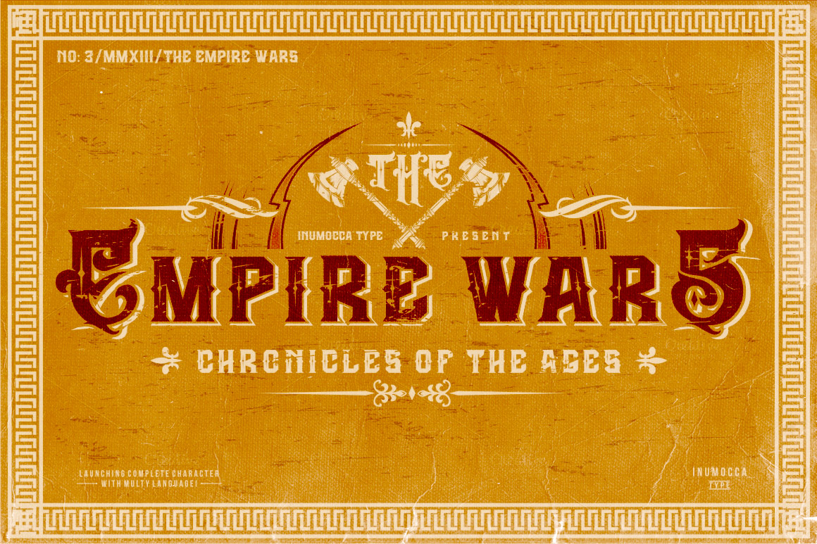 The Empire Wars was inspired from lettering on medieval age. Its really great font for your band, label, clothing company, etc.