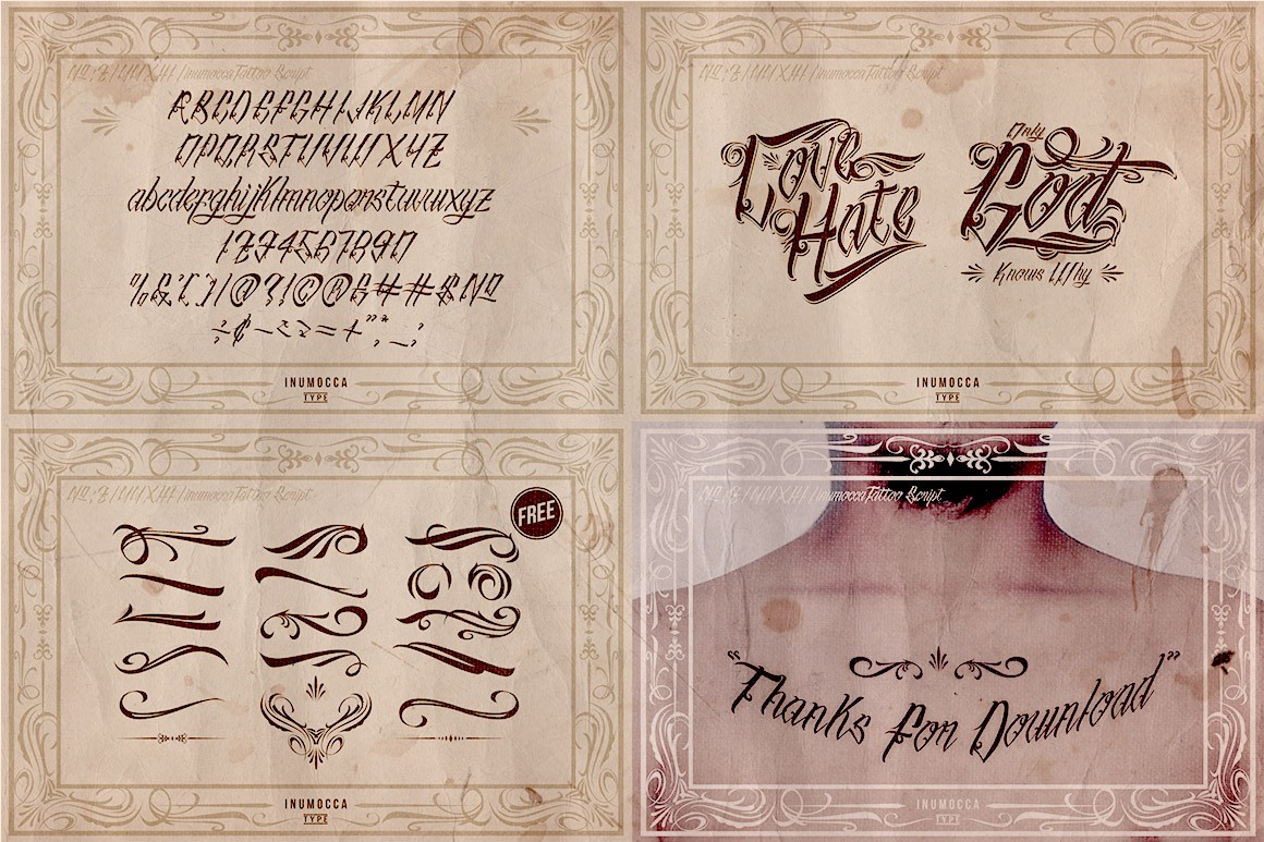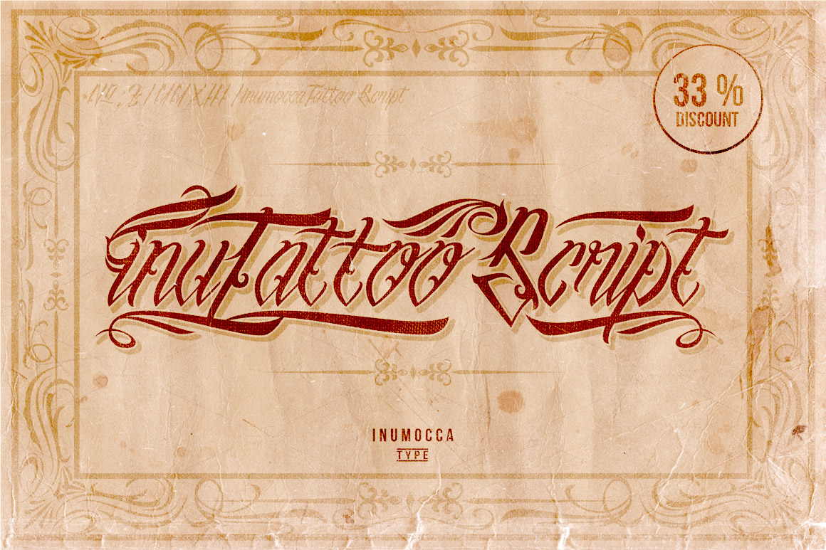 inuTattoo Script Font was inspired from tattoo lettering with swirl tattoos.