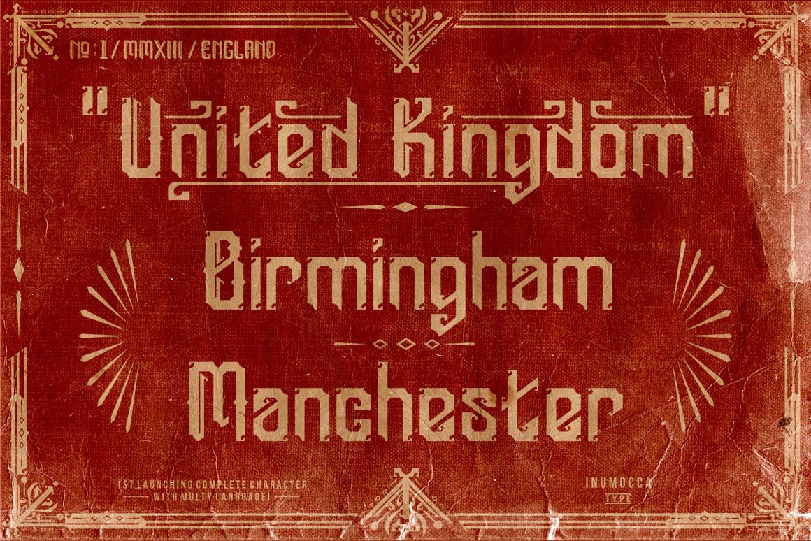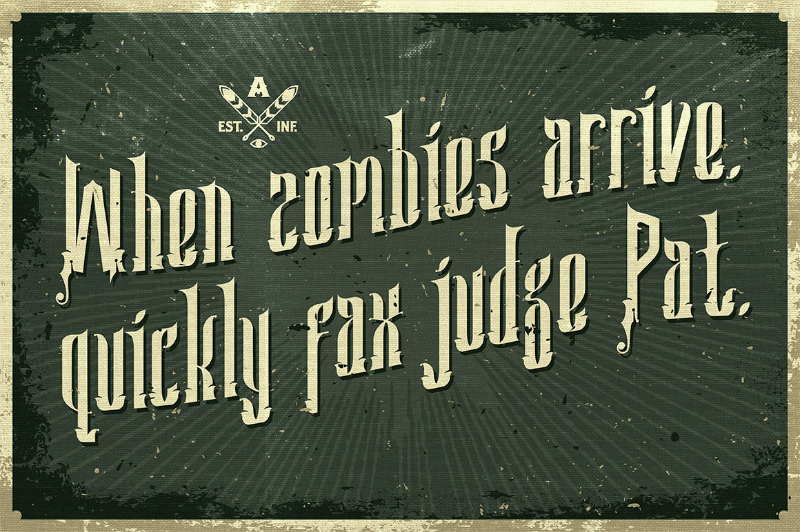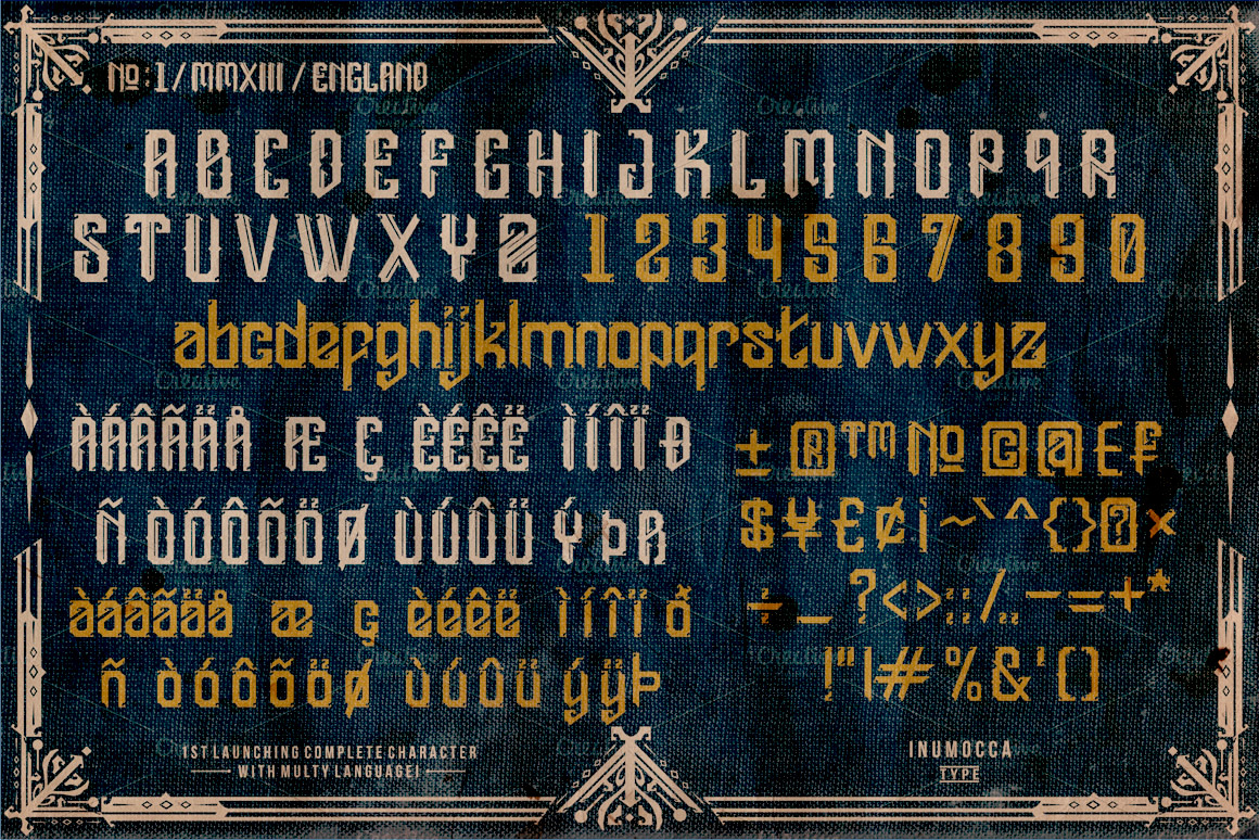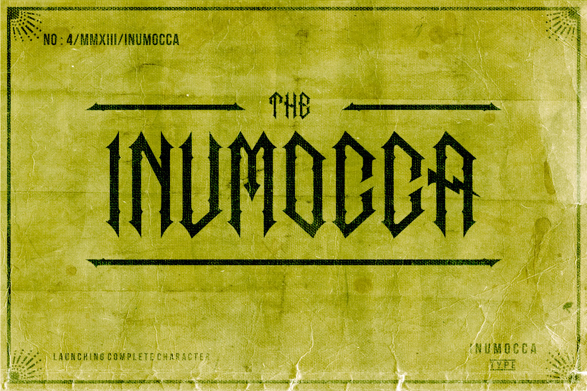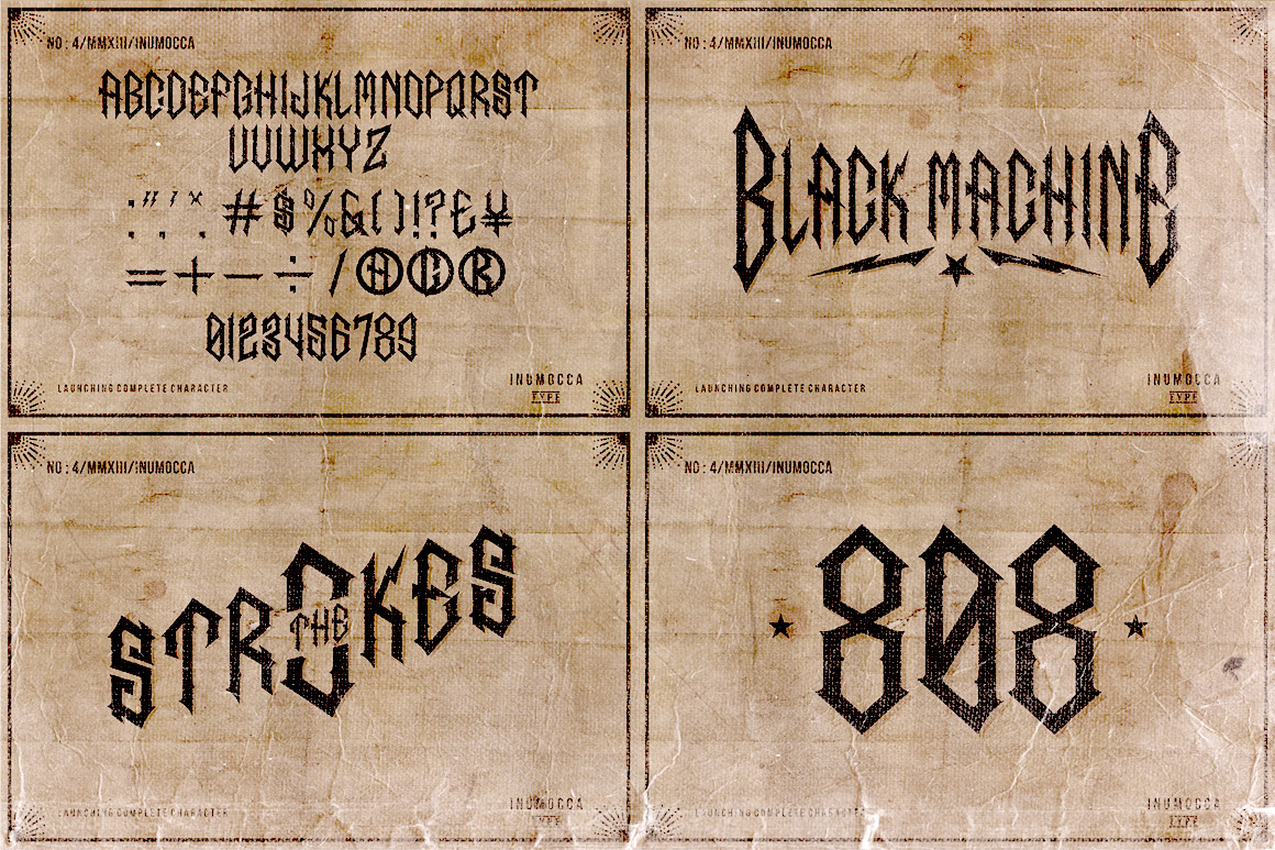 The inumocca inspired from gothic and electric lettering . Its really great font for your band, company, label, clothing company, etc.