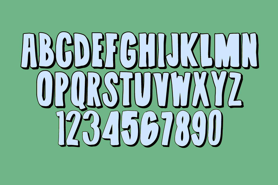 With this rad font you get both fills and outlines in cartoonish capital letters. Numbers and punctuation included.