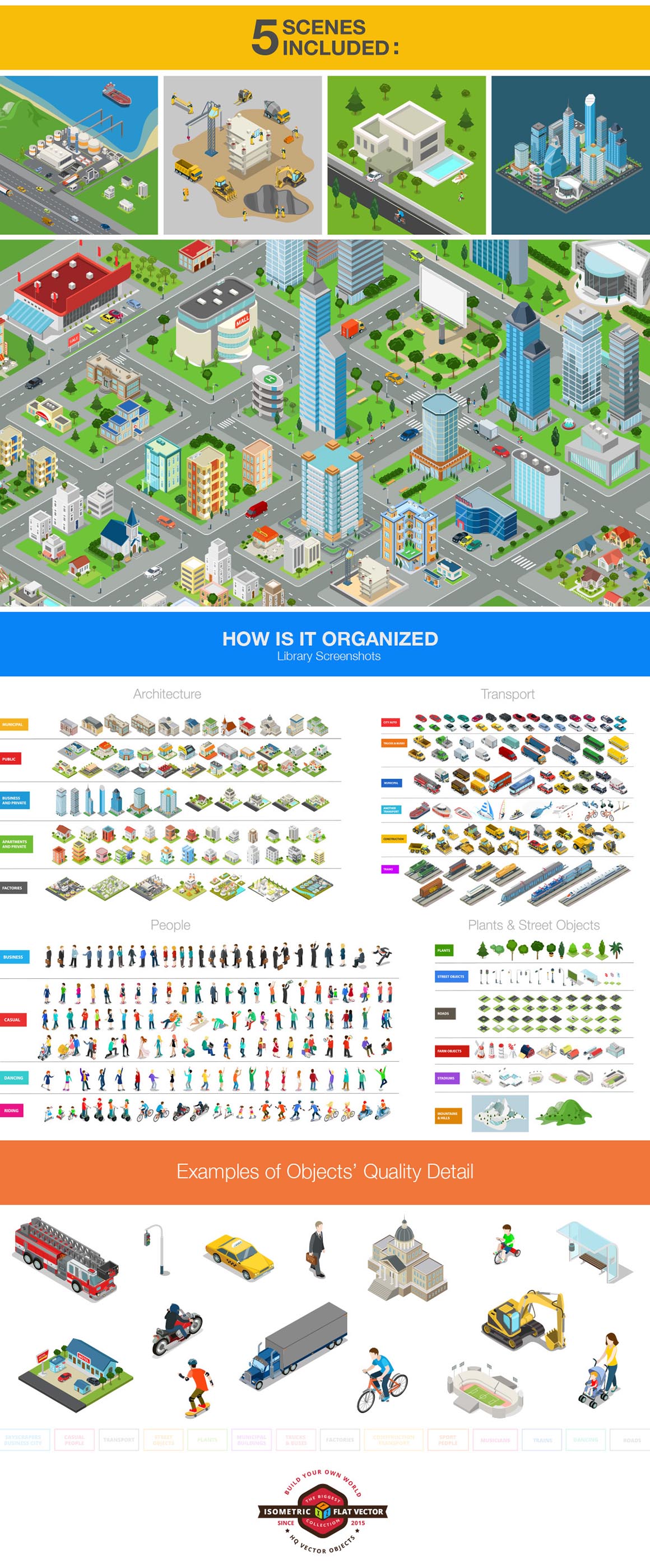 - unique & biggest isometric flat world collection with 425 objects and 5 scenes!