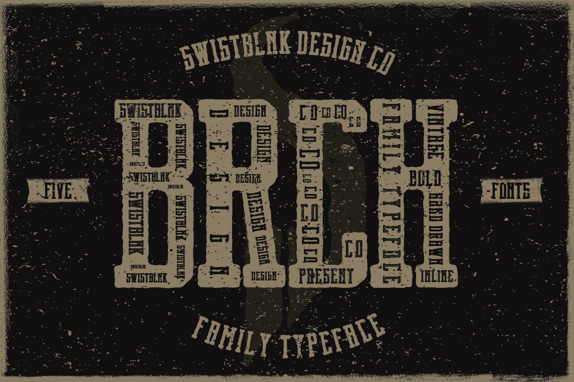 Brch is similar with Blnc but without gaff. This typeface inspired by Old Western lettering with some Modern touch. Great for almost all of your designing needs including headline, labels, logo, etc. Love vintage hand drawn? Brch also come with Vintage and Hand drawn Style and Inline to make some retro feel. Brch Family includes 5 fonts