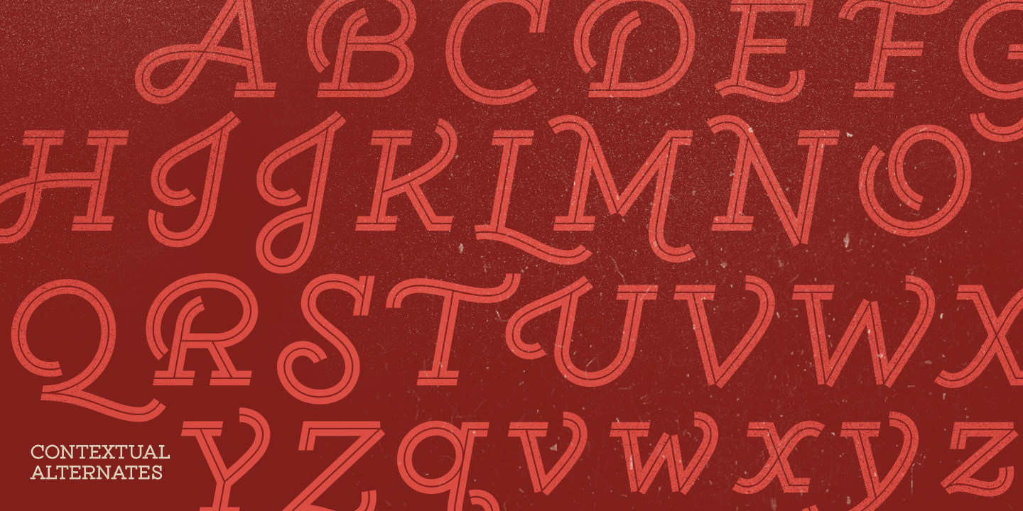 Prada is bold, classic, and fun vintage script. Crafted with OpenType features with more than 60 alternate characters to choose. This font was designed to suited as headlines, signage, poster, logo, badge, and emblem. Make sure you use OpenType savvy program and simply open Glyph Palette to access all of the glyphs.