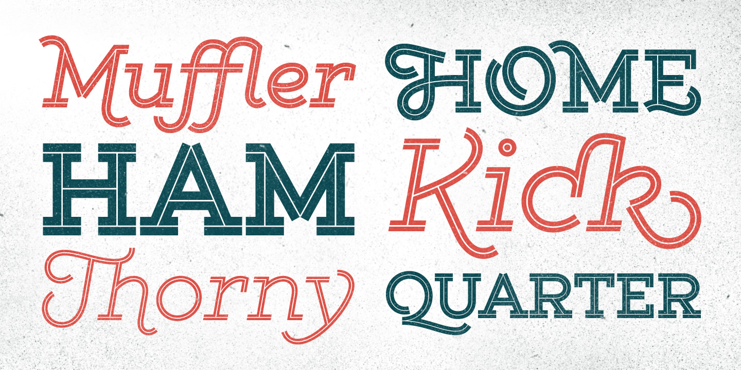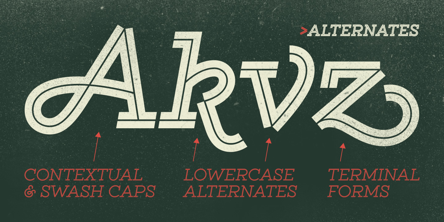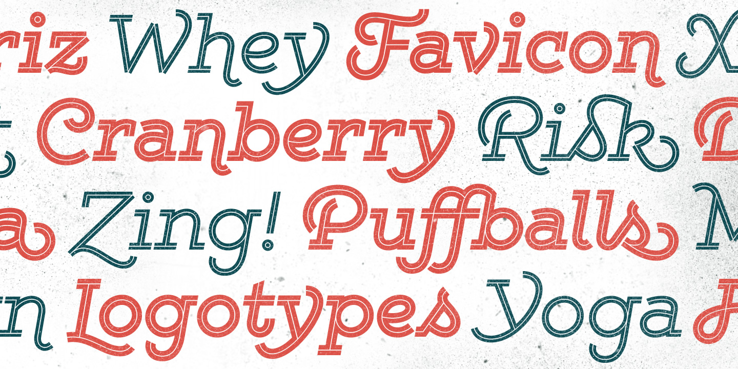 Gist from Yellow Design Studio is an inline slab serif with a retro yet modern vibe. It’s a collision between monoline slab and indie script. With 627 glyphs per weight, it’s highly customizable…either keep it simple with the base character set or use ligatures, alternates and swashes for extra flair. All-caps typesettings have an especially retro edge. Also included are line layers for adding color to the inline areas.