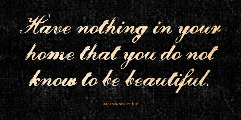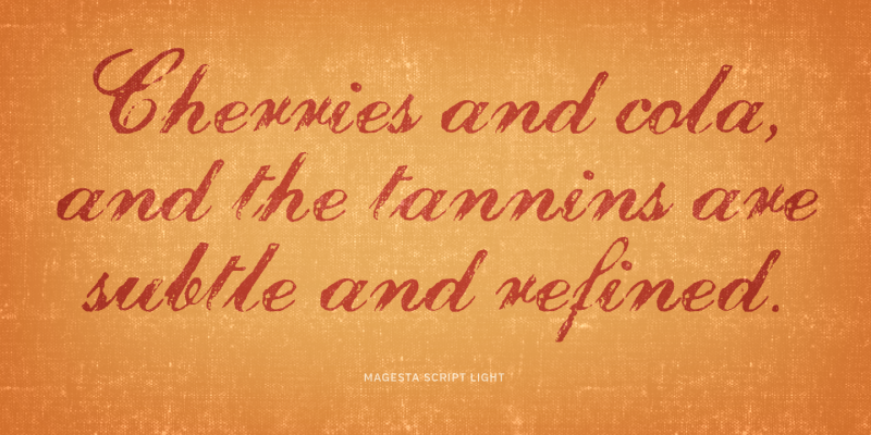 The Magesta Script family by Yellow Design Studio is a set of four retro script fonts that capture the warm, authentic qualities of letterpress printing. Light, Regular, and Bold weights simulate different levels of ink coverage, while Mix is a combination of all three. Texture and slight misalignment add to its realism and vintage charm.