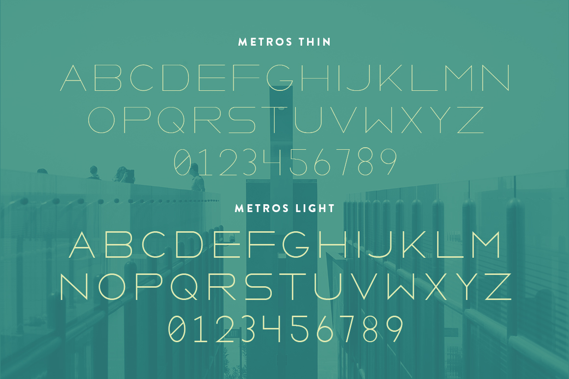 Metros is the 5th and latest font release for the Aeasea Design Co. & Type Foundry. It is my first geometric sans-serif font and first full font family that consists of 6 weights ranging from Thin to Bold. The creation of this font was a rather interesting series of experiments with a 5×5 grid in Illustrator that started with the bold weight and ended up with me figuring out how to create the 4 other weights using the same grid.