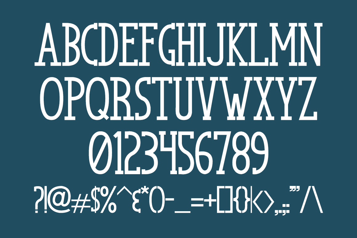 One of my latest fonts. I made this font after researching different styles of slab serifs. Only uppercase, numbers, and special characters exist.