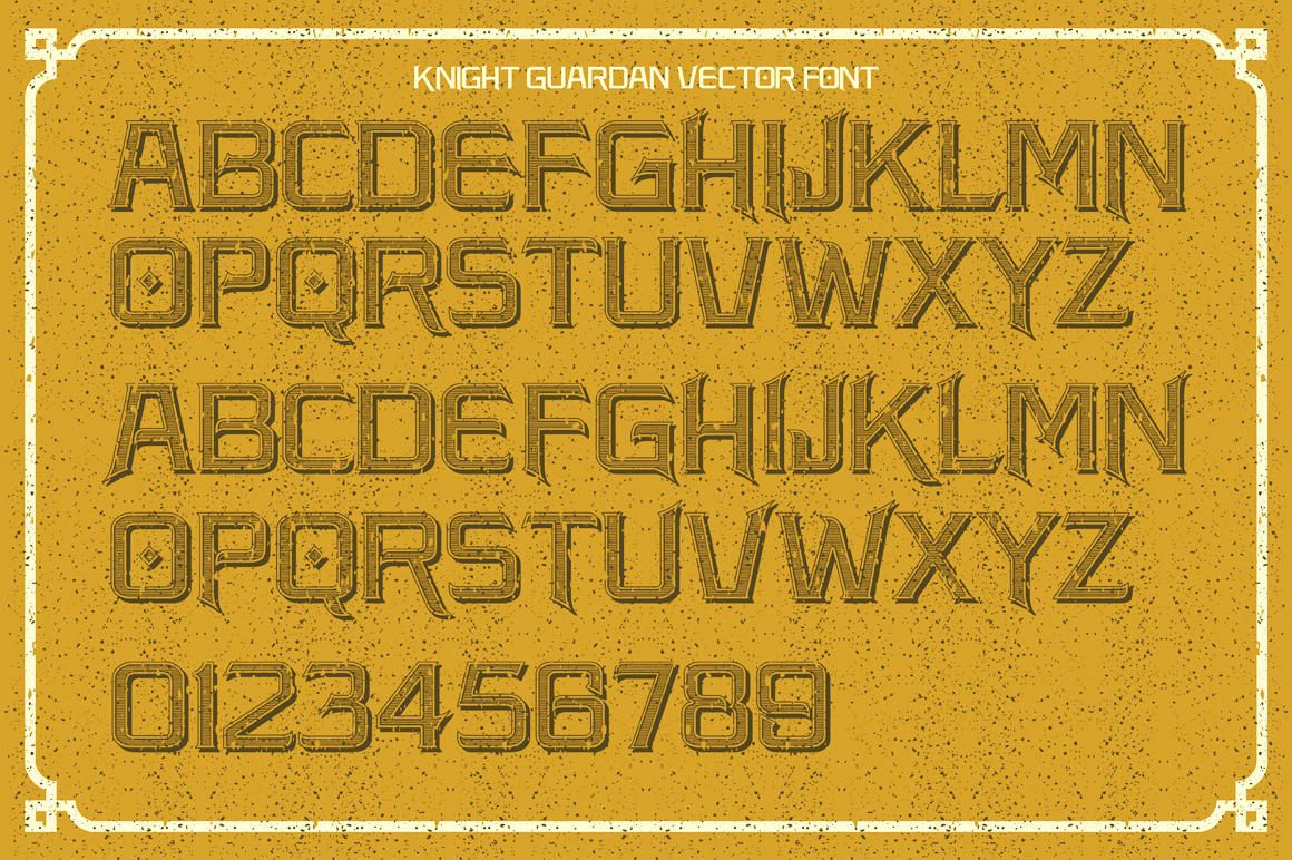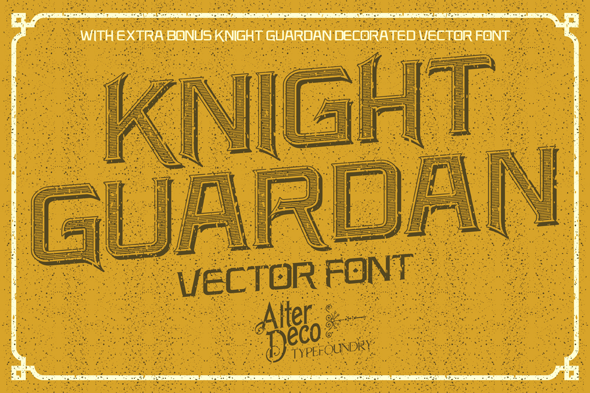 Knight Guardan font is a retro style typeface, wich is great to create a logotype, headlines, or any other design works. This package also included the decorated version of the font, wich is inspired by old style wooden cut and engraved letters in a vector format (eps), you can play and combine the vector with the font it self.