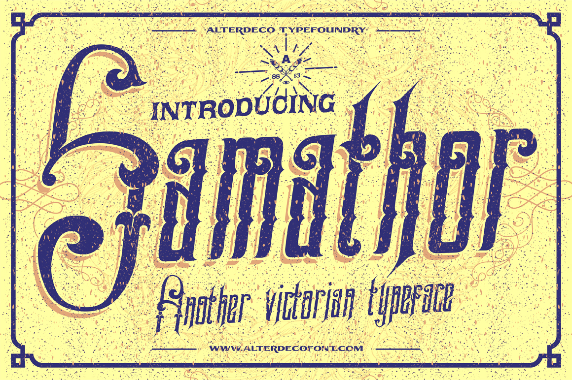 Samathor is a victorian vintage style typeface, perfect for your vintage word art typography or logo. available in ttf and otf format.