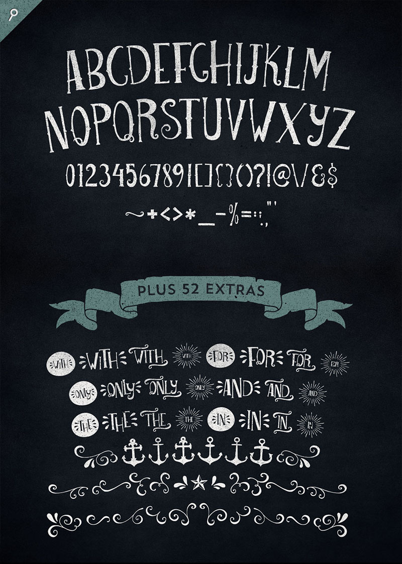 This one-of-a-kind product includes, not only a the Seaworthy font, but over 80 original, hand drawn vectors, which are perfect for wedding invitations, logos, packaging, flyers and more! Use the elements in any project you want, personal or commercial. Just make sure to adhere to the Simple License agreement and don’t re-sell them as-is, or repackage them as your own work. If you run into any problems or need any help with the files, please let me know! As always, I’m more than happy to help! 🙂