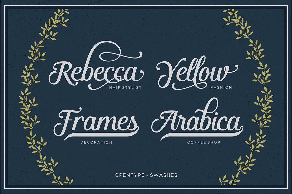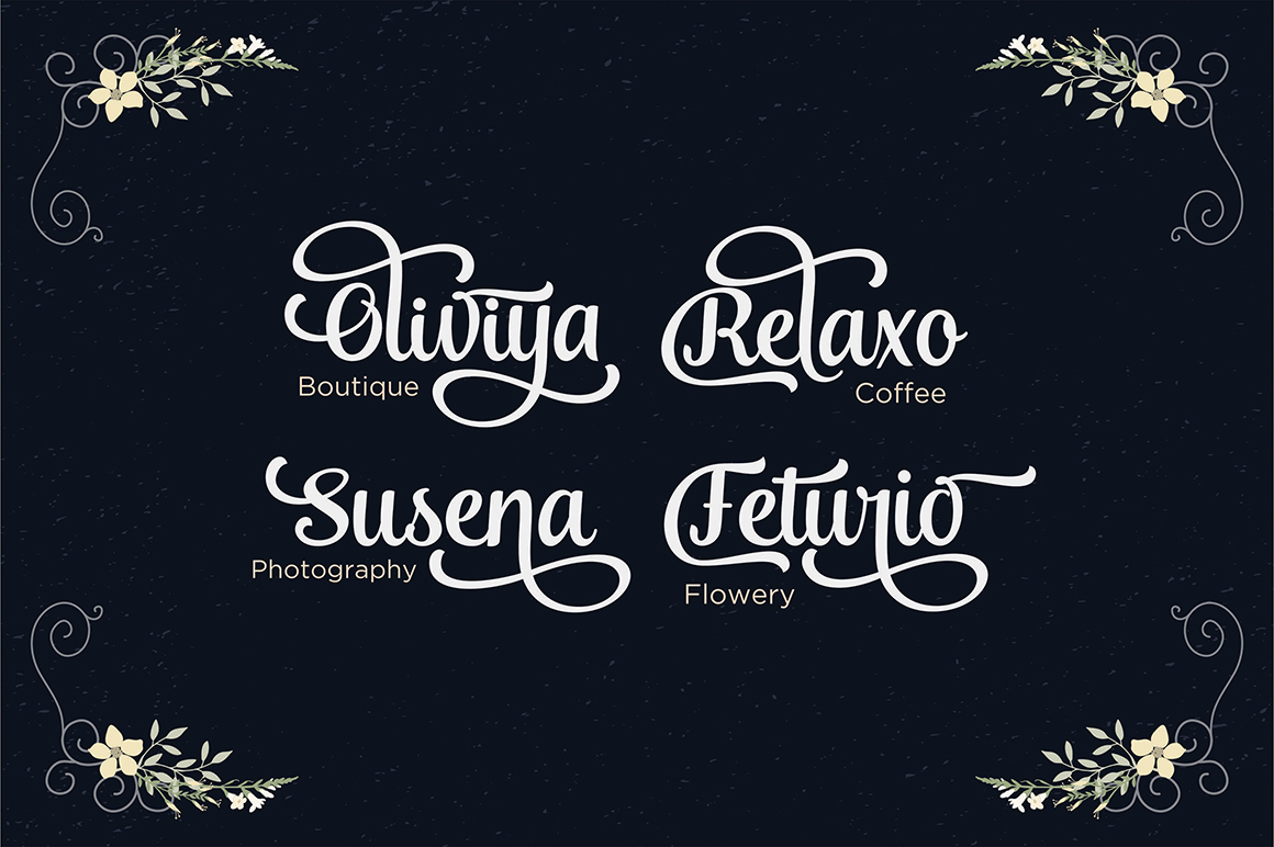 Olivera is a script font that has the characteristic handwriting, it is very suitable to make certain label and event business and you could be using for a unique piece. The alternative characters in Olivera Font were divided into several OpenType features such as Stylistic Alternates, Stylistic Sets, Swash and Ligature. The OpenType features can be accessed by using OpenType savvy programs such as Adobe Illustrator and Adobe InDesign.