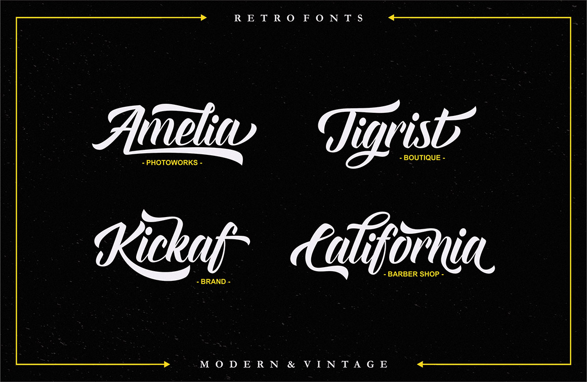 Can be used for various purposes.such as logos, wedding invitation, t-shirt, letterhead, signage, news, posters, badges etc. To enable the OpenType Stylistic alternates, you need a program that supports OpenType features such as Adobe Illustrator CS, Adobe Indesign.