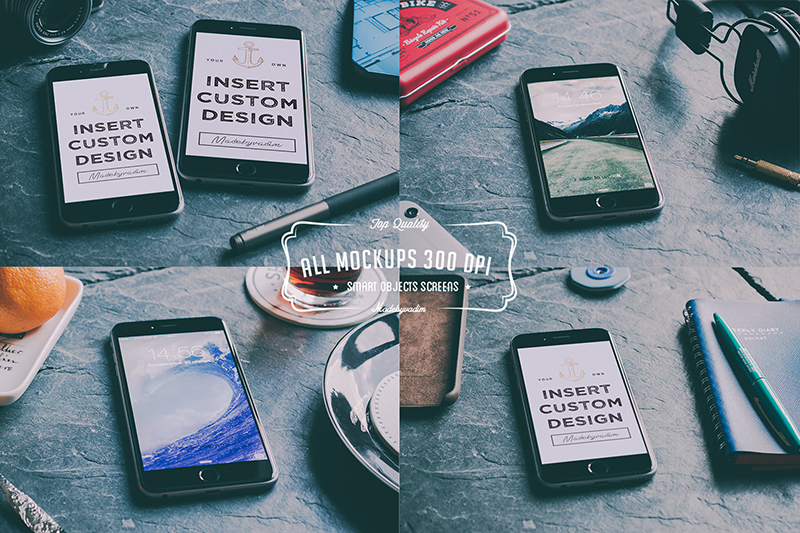 New 23 Cool iPhone 6 and iPhone 6+ mockups. Not your ordinary hand-holding-mockups 🙂 All mock-ups with Smart Object replaceable screens. Once click screenshot replacement! Original uncorrected photos is included in psd file. You might wanted to use another color correct for your specific need, so I include original unprocessed image as well.