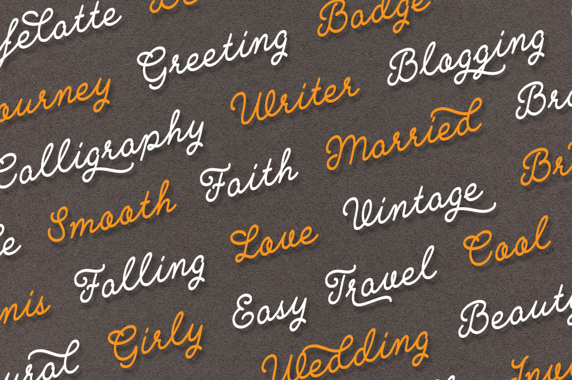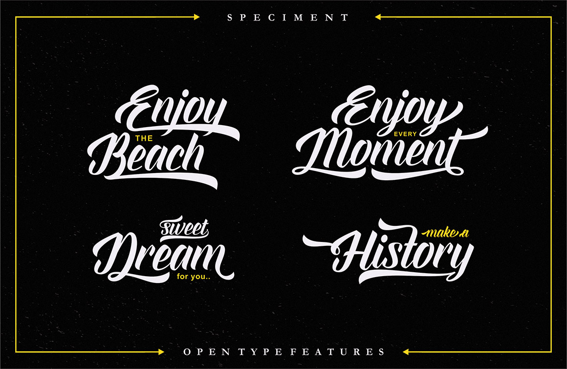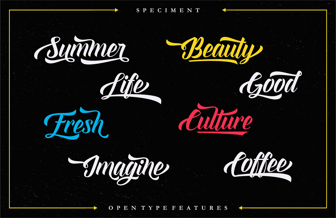 With strong hand-lettering feeling put on it, Aliva can be used in any projects: from clothing brand to wedding invitation, it is so fun and casual typeface with personality. You can play with almost 100 alternative characters included on it, which are divided into several OpenType features: Contextual Alternates, Stylistic Alternates, Stylistic Sets, and Ligature. The alternate characters are ideal to make an attractive message. The OpenType features can be accessed by using OpenType savvy programs such as Adobe Illustrator and Adobe InDesign.