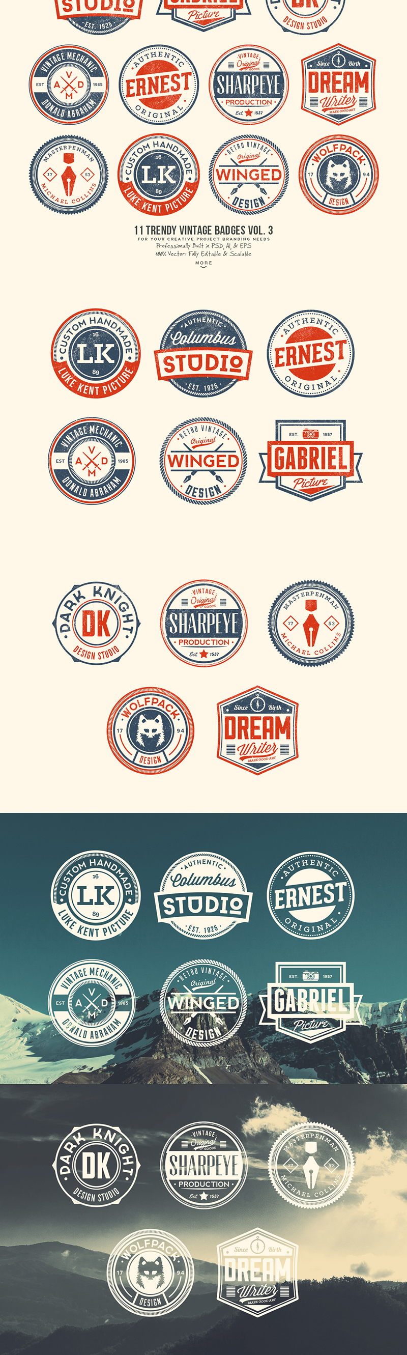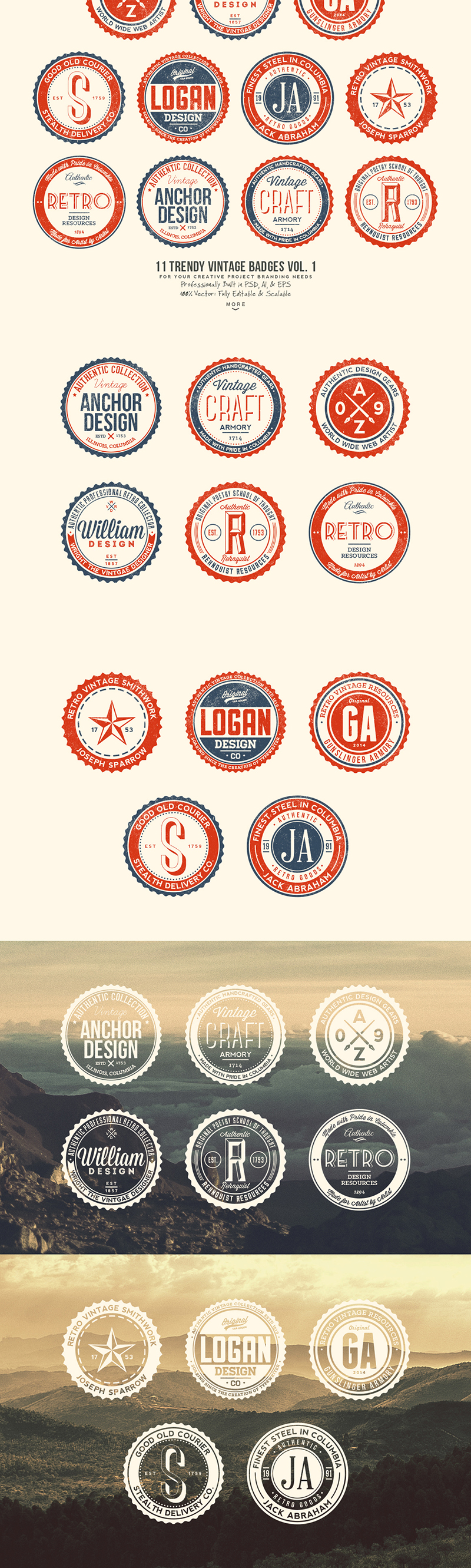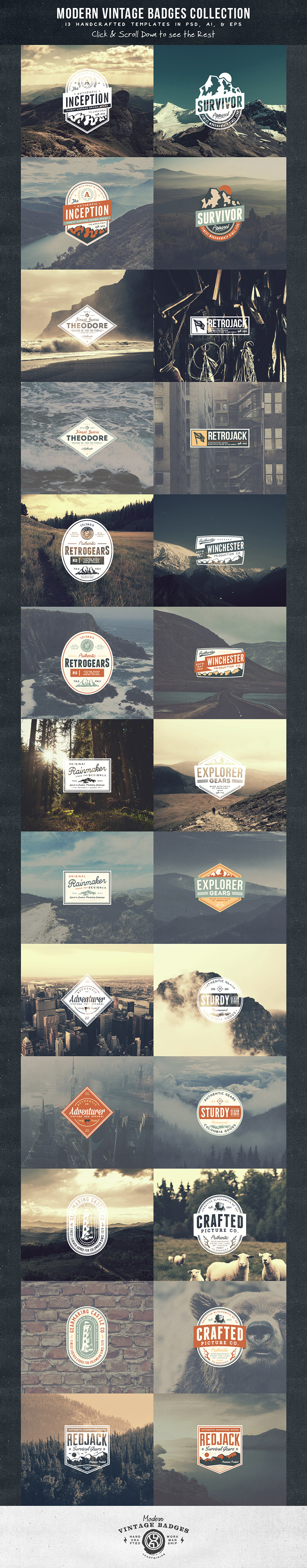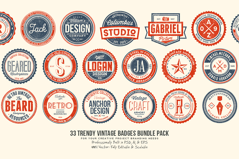 Looking for outstanding graphics to brand your creative project? Here’s a set of 33 vintage badges which can be used as your logos, labels, badges, watermark and other identity and branding materials. Brand your creative projects with these retro style logos and it’ll bring out a strong branding presence and vintage handcrafted impression.