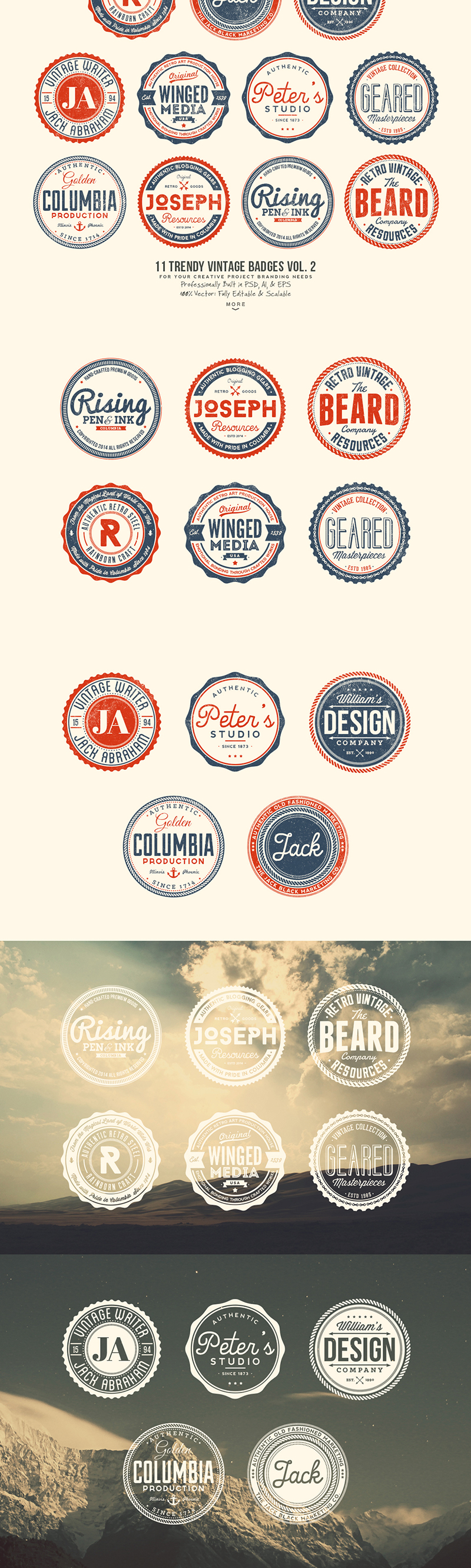4C. 33 Trendy Vintage Badges Bundle Pack by Yusof Mining