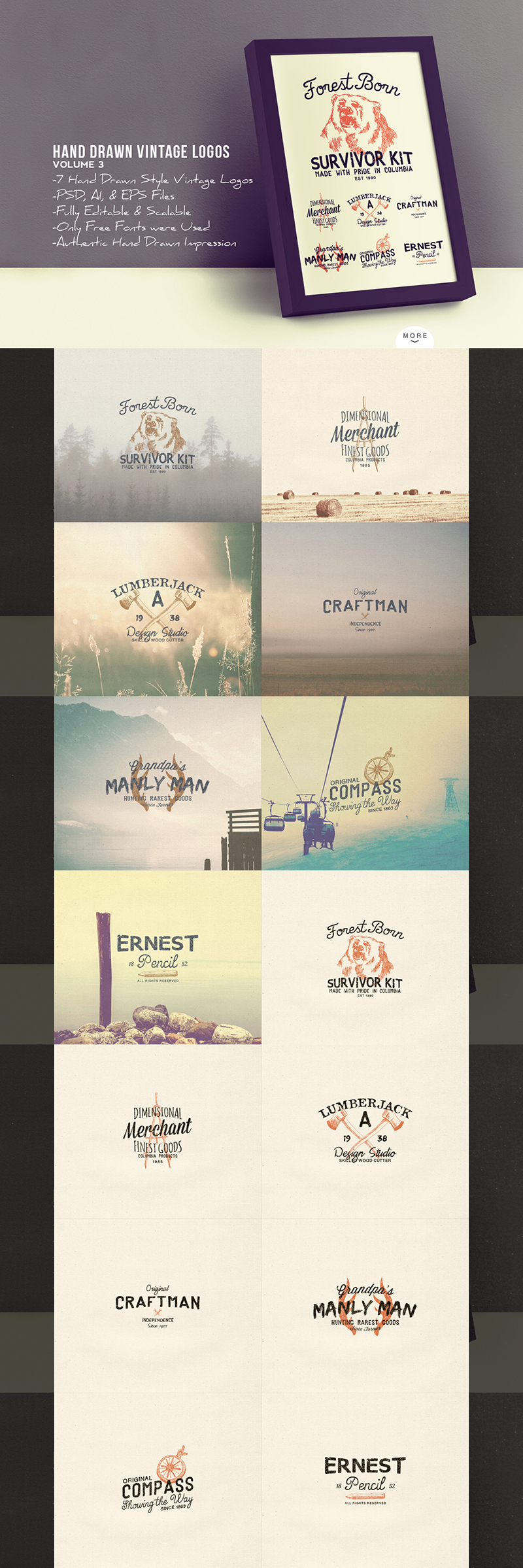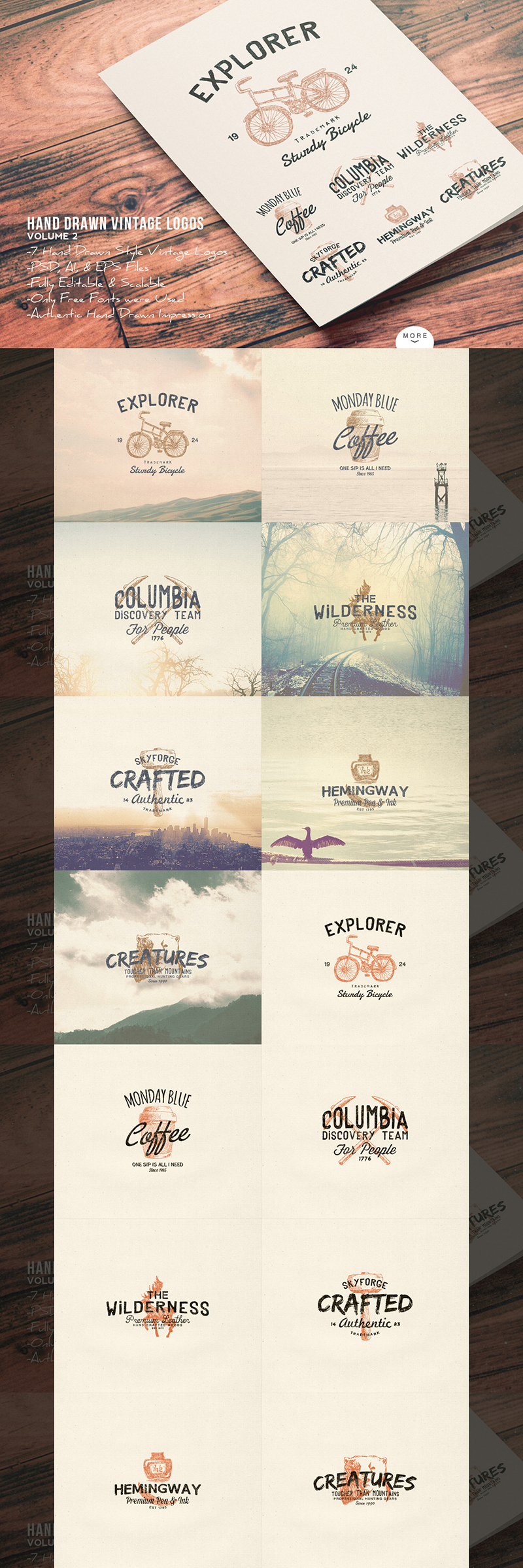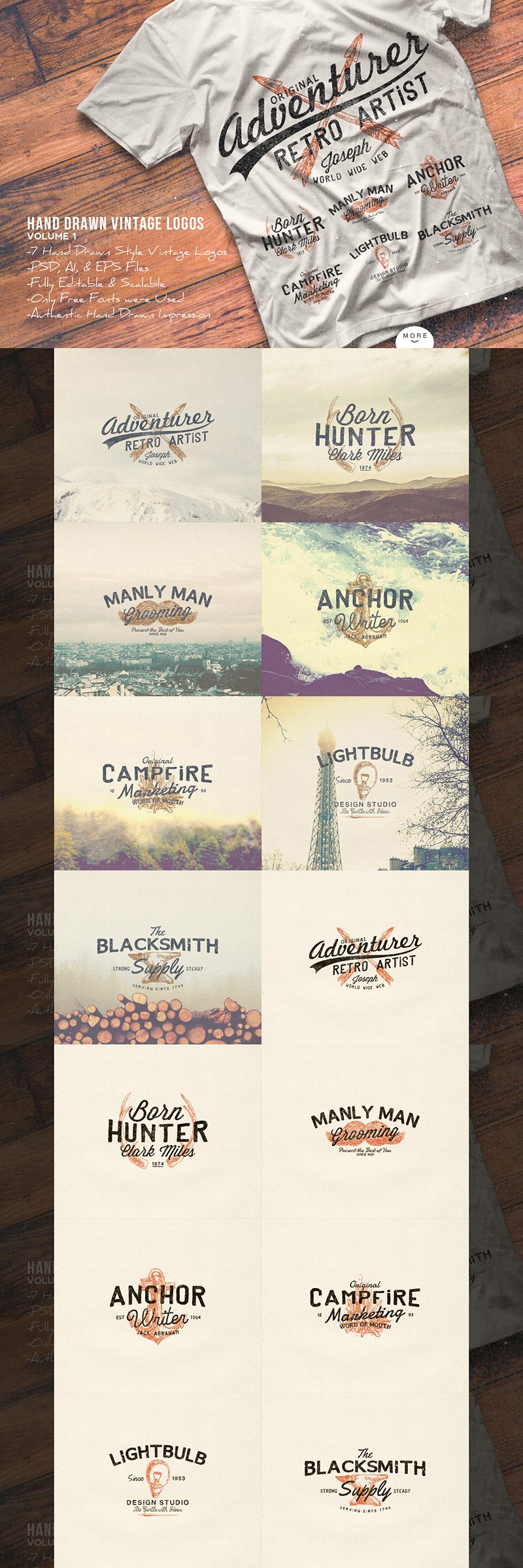 Looking for handcrafted graphics for your creative project needs? Here’s a set of 21 hand drawn vintage logos which can be used as your logos, labels, badges, watermark and other identity and branding materials. Use these logos as your latest project identity and graphics: to bring out “handcrafted” branding presence and retro workmanship of yours.