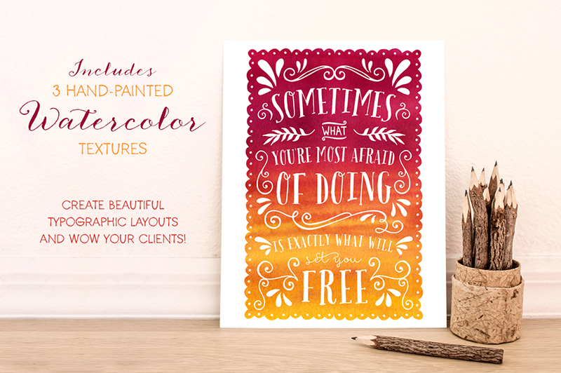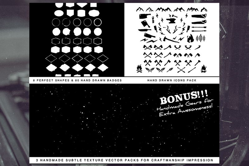 Only Best Sellers – Mega Bundle! vol.4 contains hundreds of watercolor effects, textures & elements, retro/vintage logo & badge templates, lot of unique custom fonts, handdrawn vector shapes, presentation mock-ups and photos from 10 talented designers.