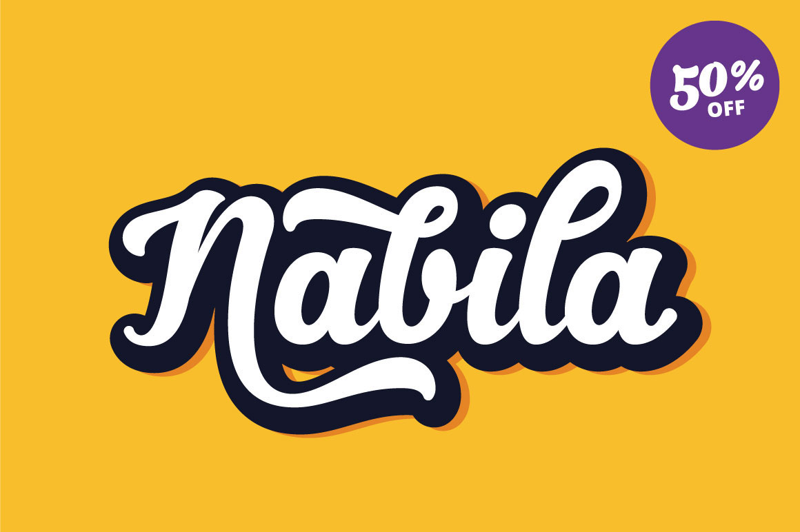 Nabila is bold, playful, modern, and multi-purpose typeface that combines brush lettering with natural handwriting. It is suitable for logo, packaging, headline, poster, t-shirt, etc. With 350 glyphs and 155 alternatives characters, you can mix and match Nabila to fit your design. The alternative characters divided into several OpenType features such as Ligature, Contextual alternates, stylistic alternates, stylistic sets, and swash. It can be accessed by using OpenType savvy program such as Adobe Illustrator and Adobe InDesign.