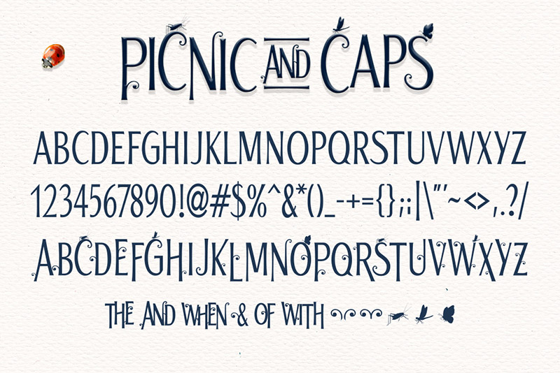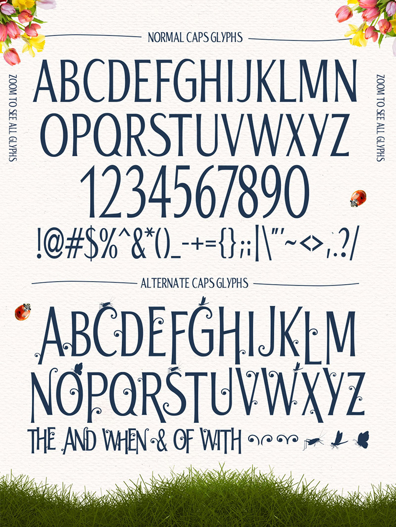This font was created especially for creative titles. This font contains only caps, alternate caps and decorative glyphs .