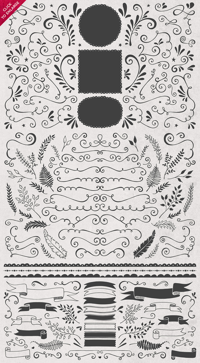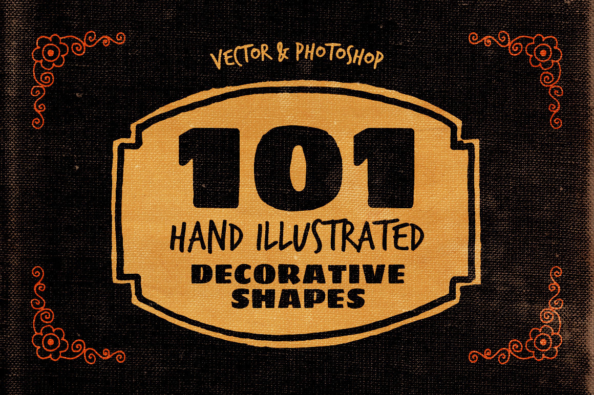 101 handdrawn vintage style shapes for your new projects 😉 All shapes are in vector formats (ai & eps) and also in photoshop (psd) format like resizable shapes. Enjoy 😉