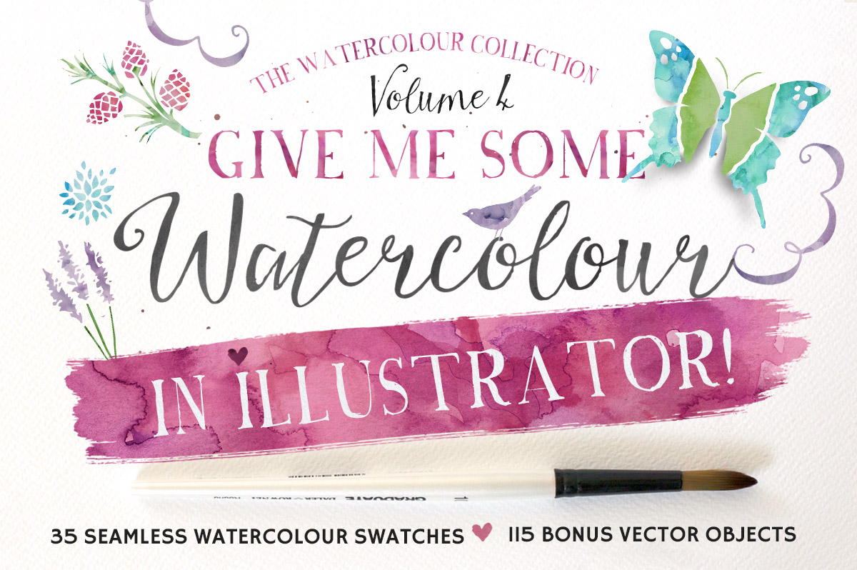 After many requests for an illustrator equivalent to my other photoshop-based watercolour packs, here it finally is, a nifty new pack that includes 35 new and unique , high resolution, raster, seamless watercolour swatches for Illustrator, AND a juicy new collection of 115 vectors for you to apply them to and make marvellous watercolour creations of your own….