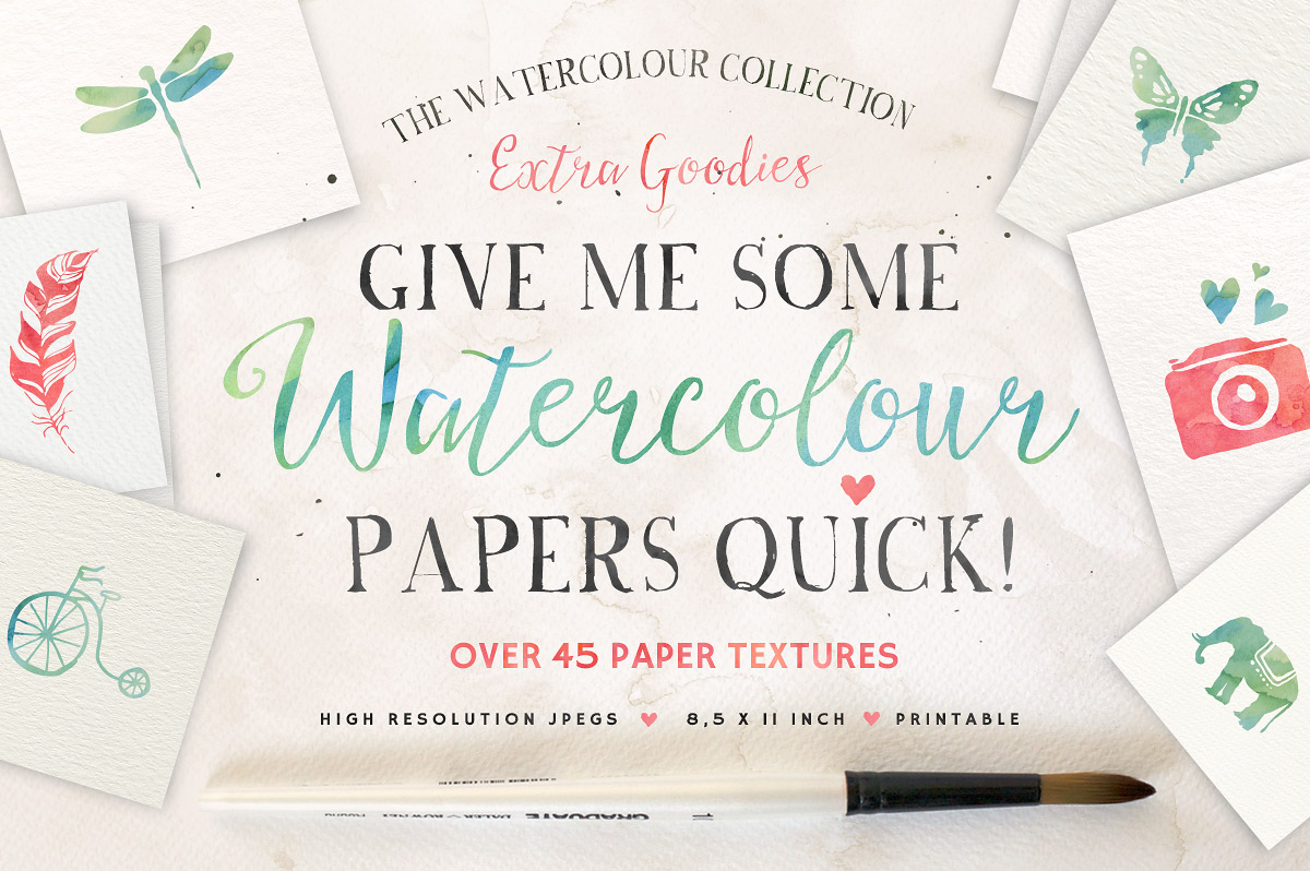 After so many requests for the paper textures I use in my previews , I’ve decided to throw together a Super-handy pack of over 45 authentic, high-resolution, printable, jpeg watercolour paper textures. These are perfect as a background texture for all of your delicious watercolour digital creations – and essential in bringing your digital watercolours to life!