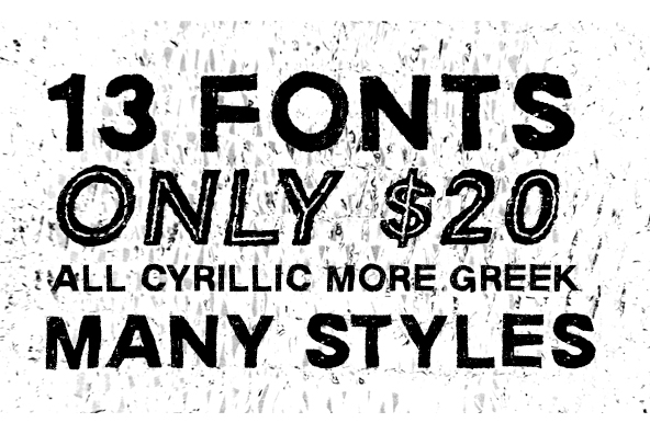 Children-One was inspired by drawing freehand letters in a childish style. Contains Cyrillic and Greek language support, as well as OpenType swash features.