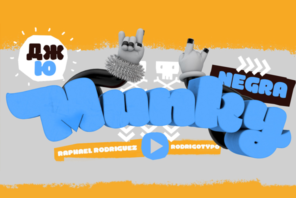 Typography inspired and designed for video games or applications online, a fat and heavy typography with different alternatives, swash, set dingbat, rough, and also contains Cyrillic alphabet, which also have swash, “Munky” invites the designer, to create dynamic titles and quite entertaining way.
