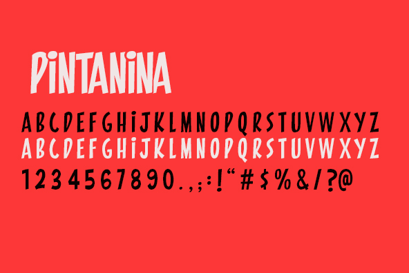 Inspired by titles found in Chilean comics, Pintanina is a font designed by Rodrigo Araya Salas.