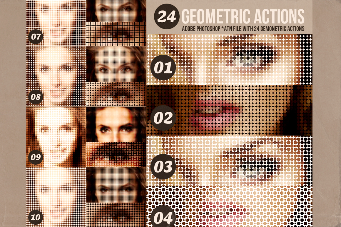 - 56 Geometric Photoshop Actions ( Adobe Photoshop ATN & PAT )