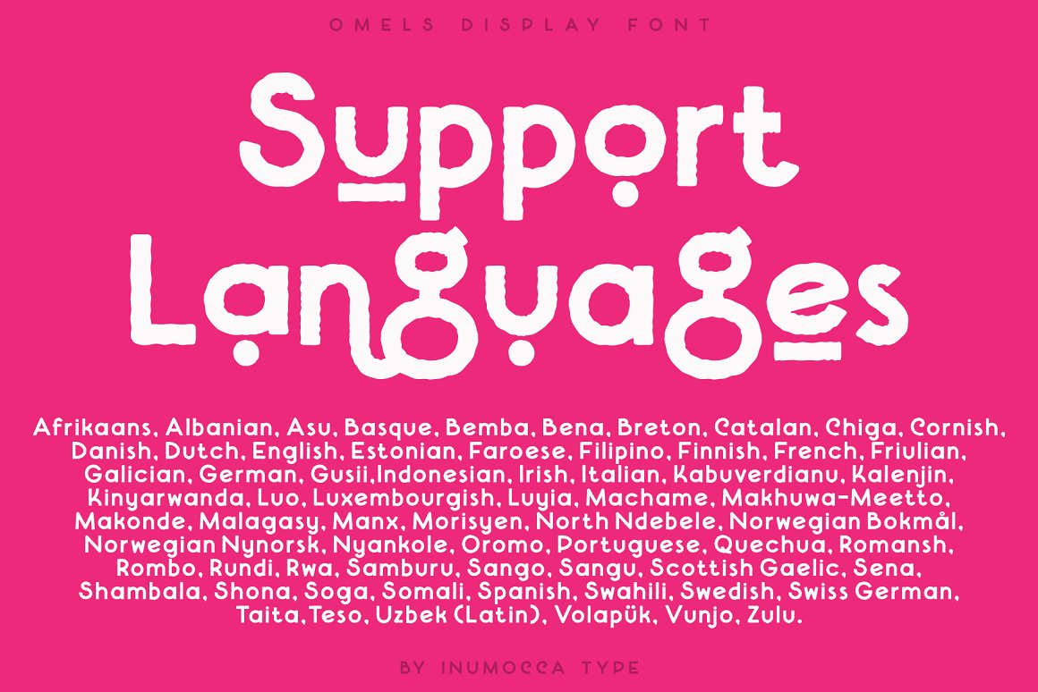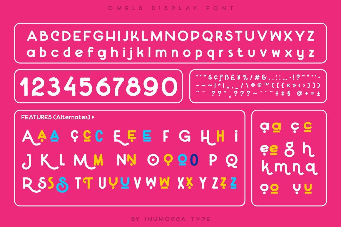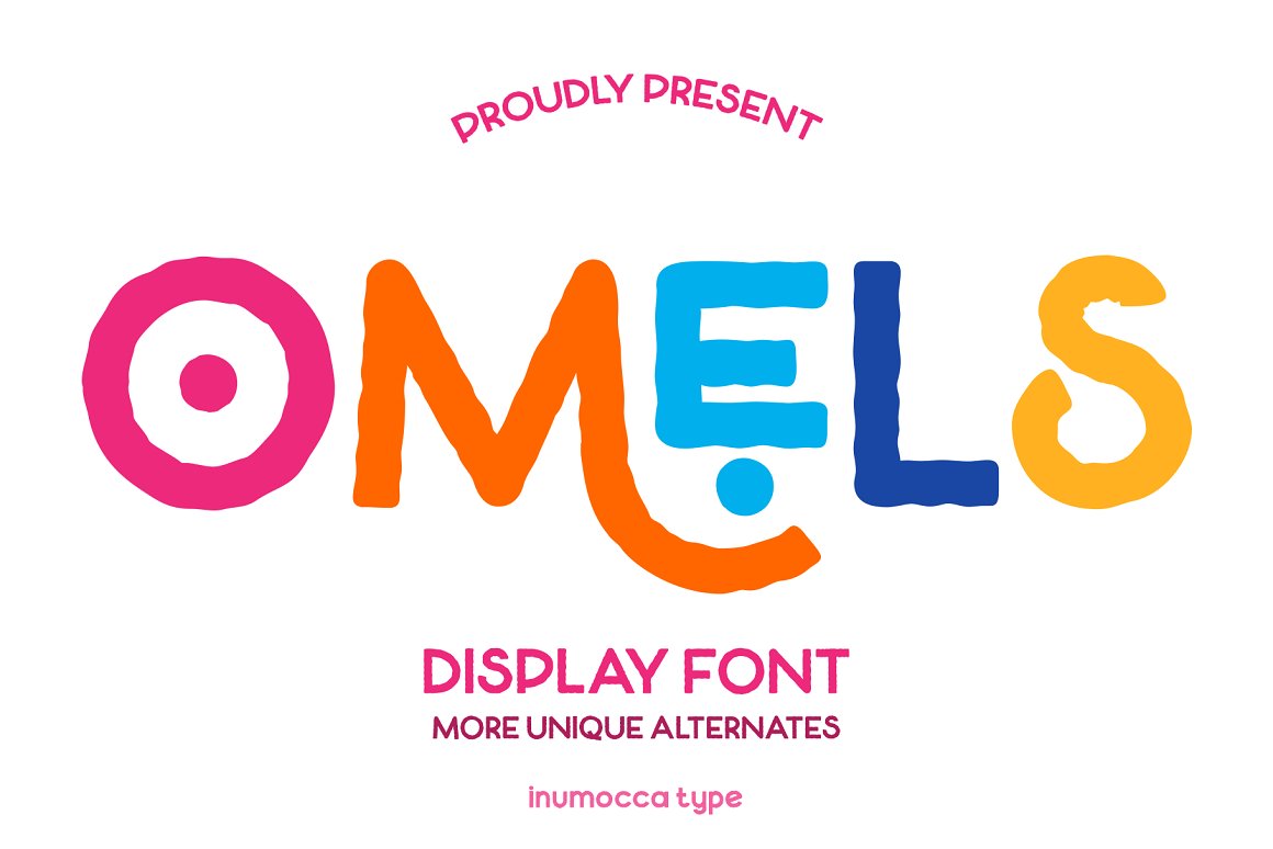 Omels Display Font, fun and joyful character but strong and dynamic. simplel for access of Unique Alternates Exellent typeface to use for covering your Project, like Branding, Movie Title, Headline Letter, Bookcover or Book Content, Magazine cover, Poster, Quotes Lettering, Logos, and more your project design.