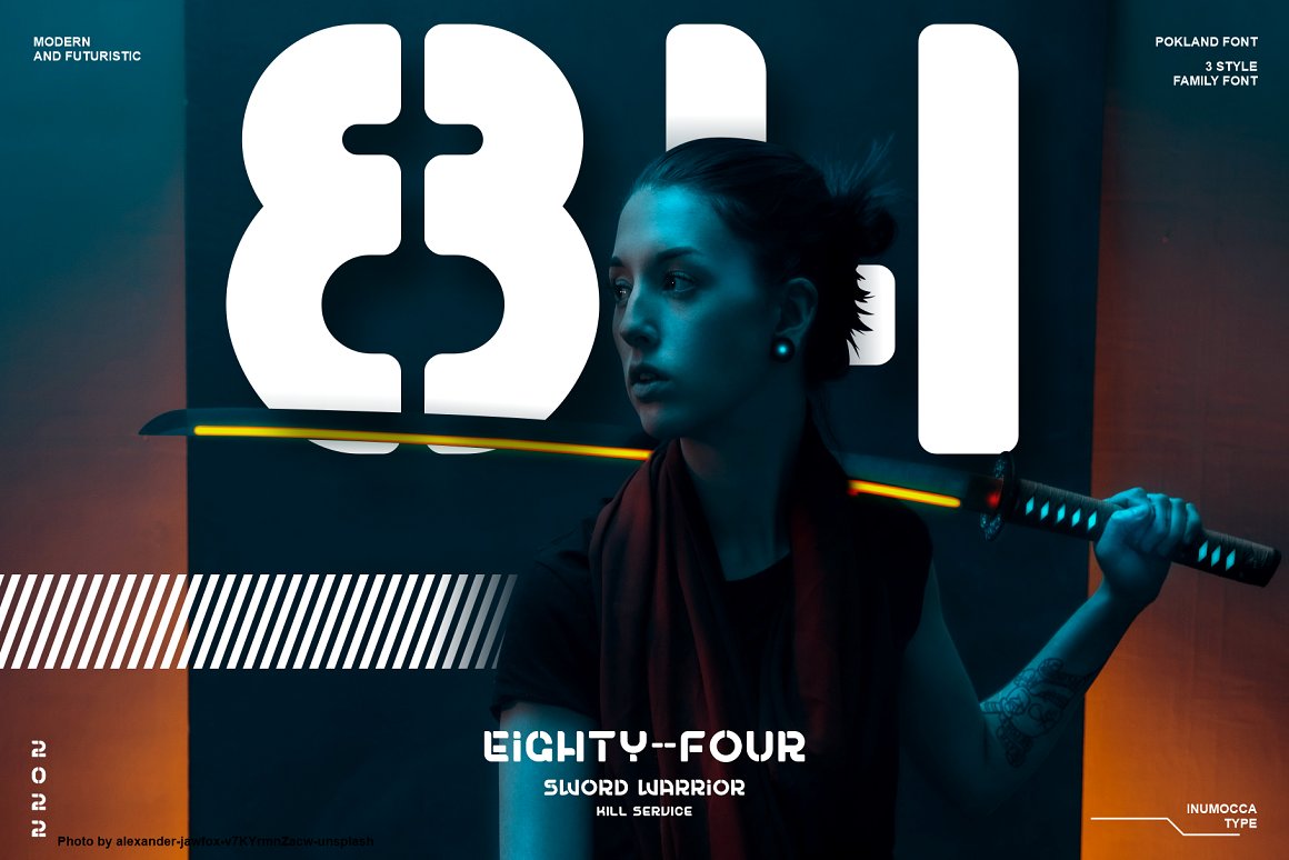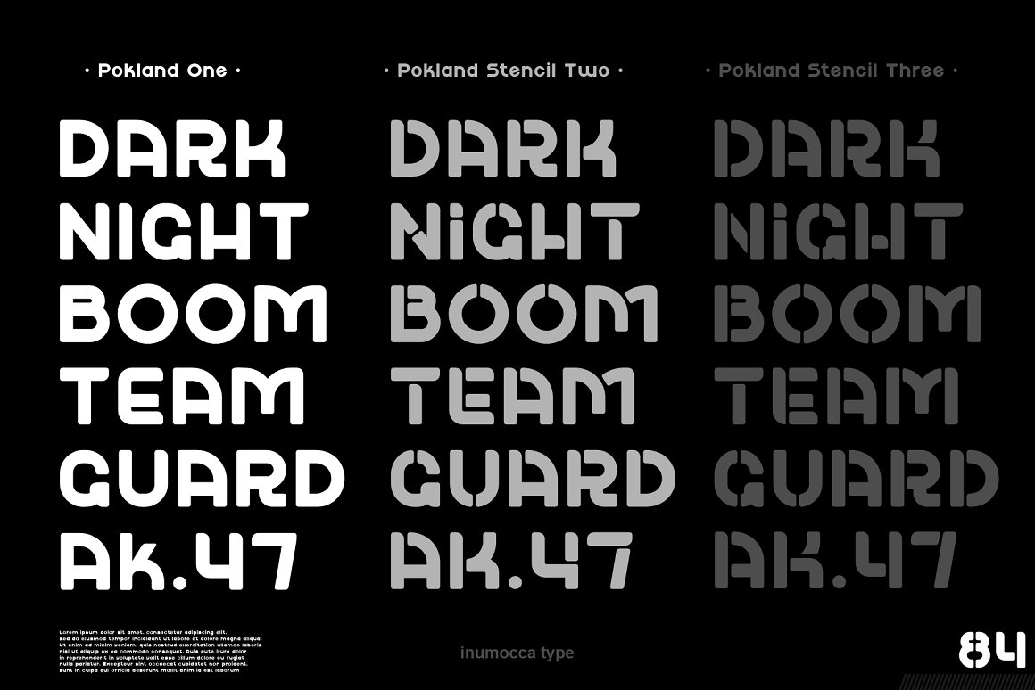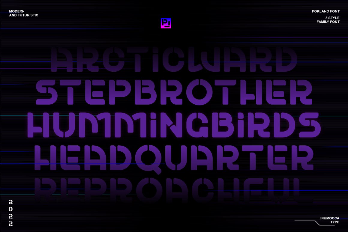 POKLAND Modern Family Font, Come with 3 Style, Reguler One, Stencil Two and Stencil Three, Modern Futuristic, Minimalist and unique Glyphs Construction. Inspiration from Synthwave, Mecha, Modern Technology, Sci-fi Movie Poster, science and Space Theme. Really great font to covering your Project, like Lettering, Website Interface, Magazine, Branding, Poster, wedding invitations, Quotes Lettering, Logos, and more your project design.